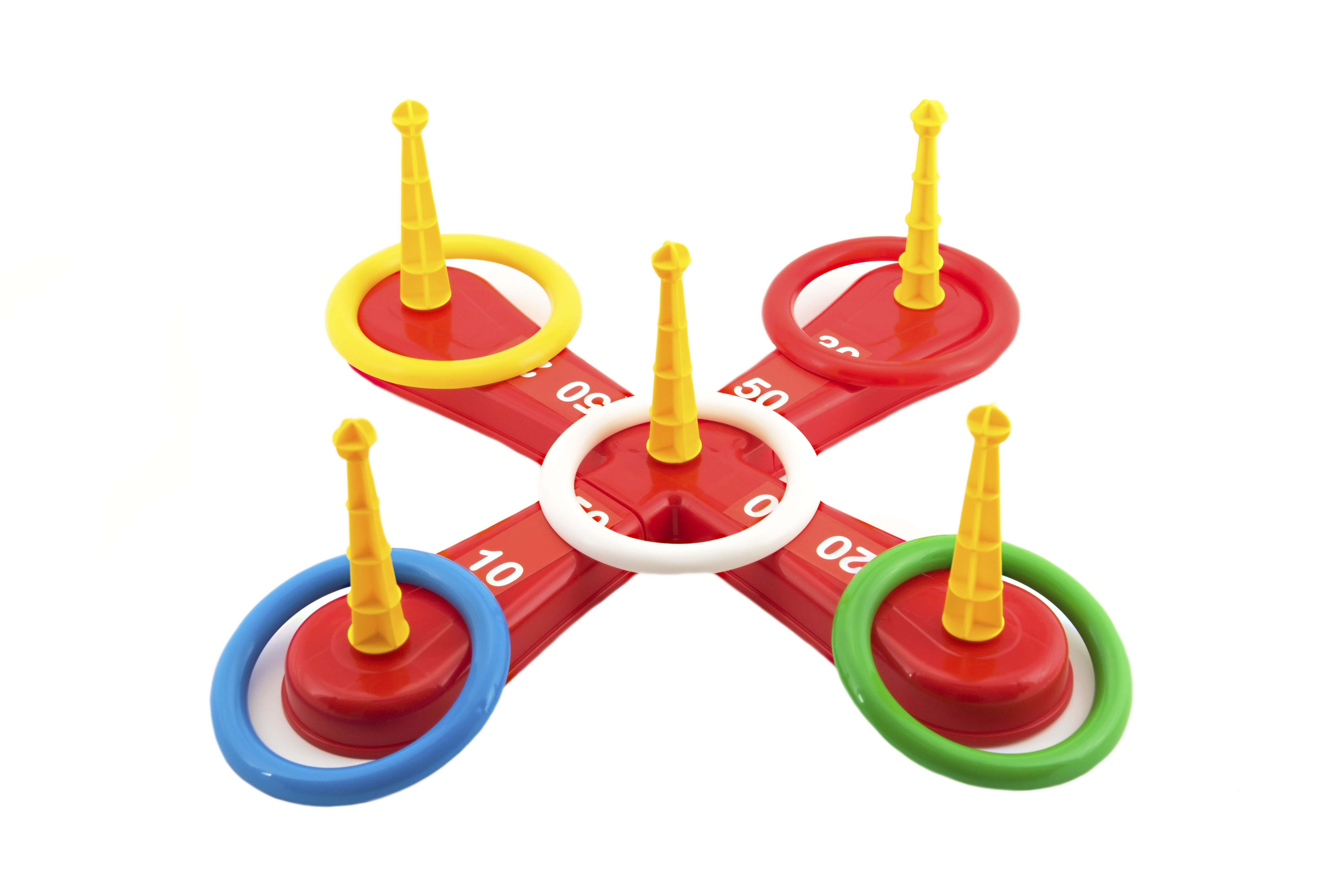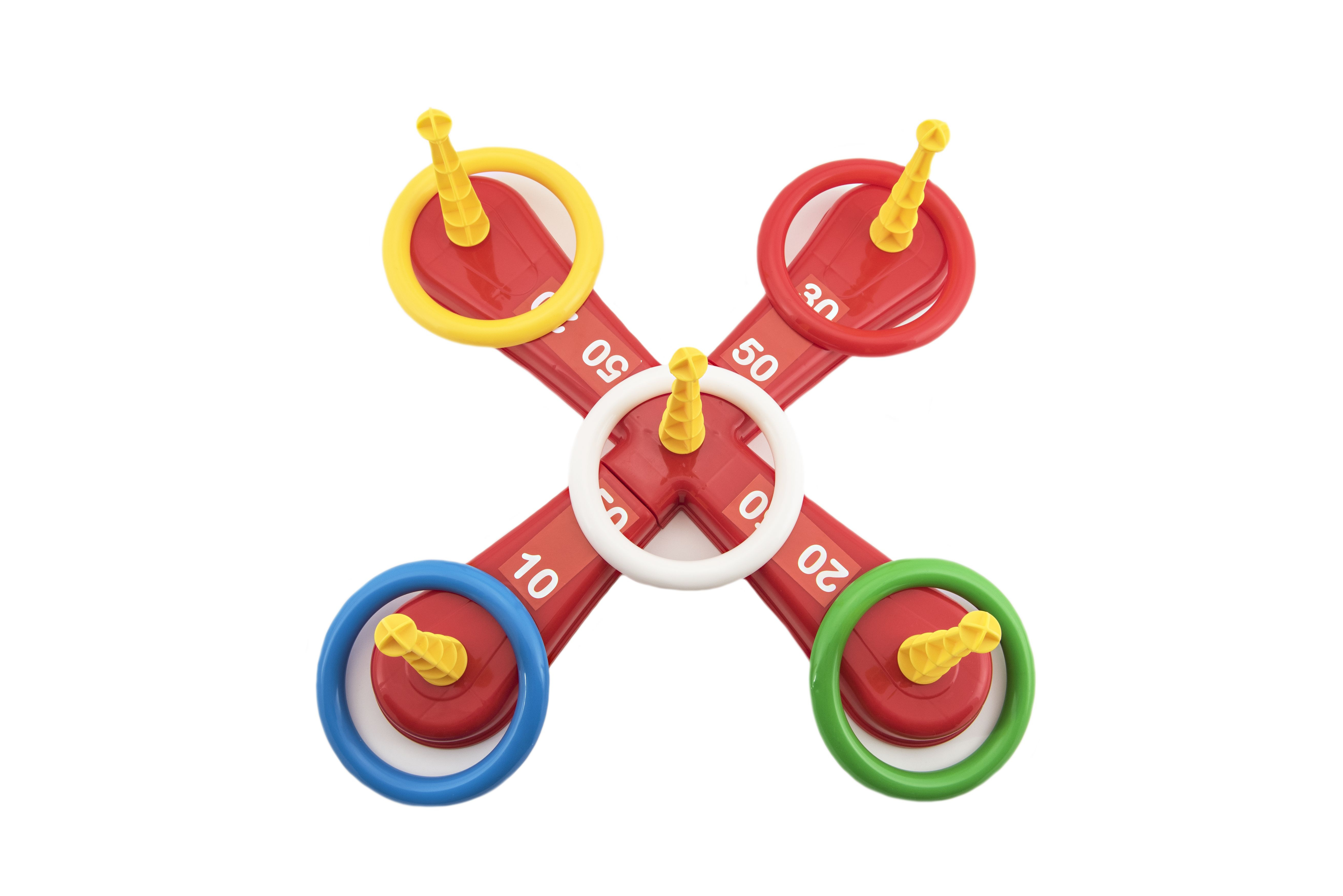 Zábavná hra, při které se hází kroužky na kříž. Balení obsahuje kříž s pěti hroty a pět barevných kroužků. Jednotlivé dílky jsou vyrobené z plastu. Tato hra se bude líbit zejména nejmenším dětem, které mohou sbírat body za každý hod, kdy se jim podaří umístit kroužek na hrot. Natrénují si také přesnost a trpělivost. Vhodné od 3 let.