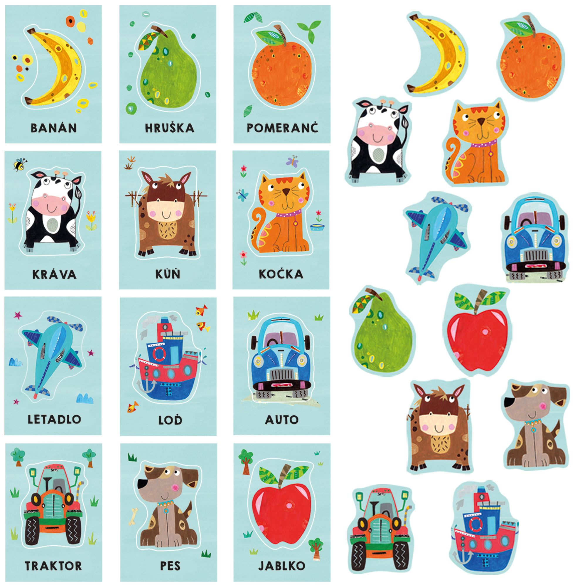 Obsah balení: 12 velkých karet, 12 barevných tvarů