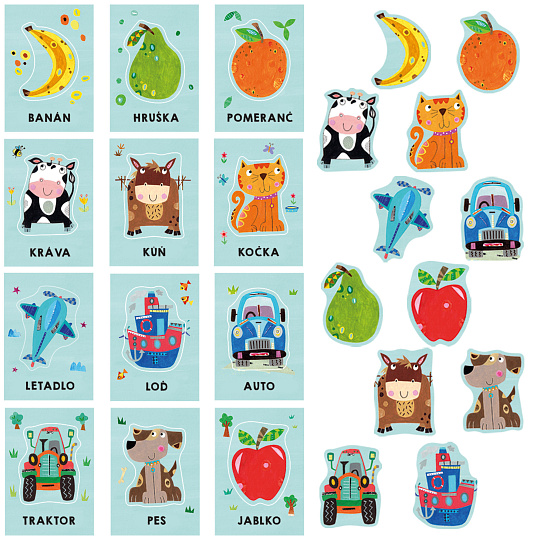 V této hře pomáhá dětem metoda 3 fází učení poznávat obrázky, zapamatovat si a správně vyslovovat názvy vyobrazených předmětů a rozšířit slovní zásobu.