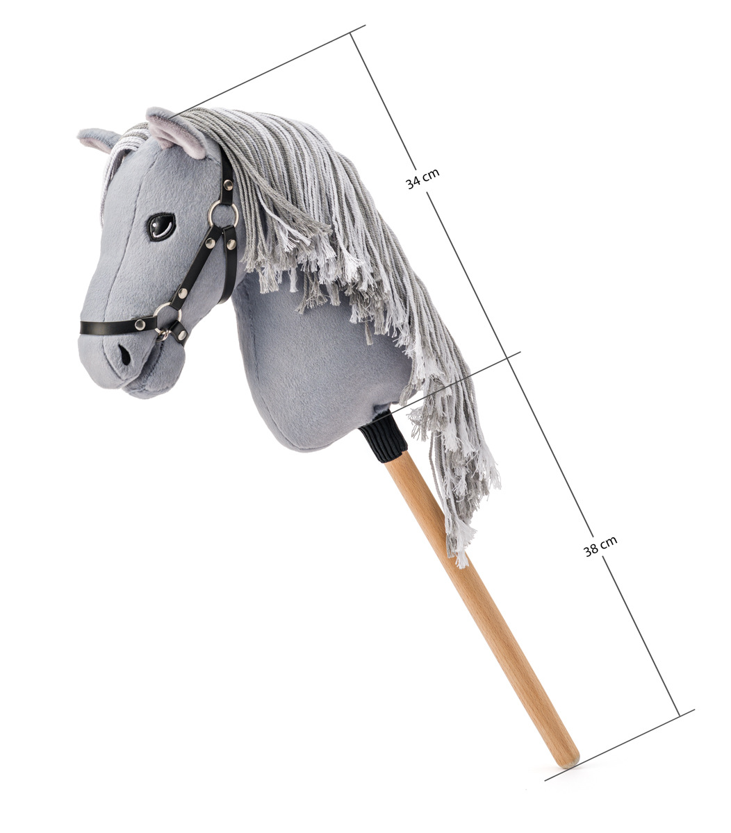 FAUNICA Hobby horse Apollo, šedý kůň na tyči, provázková hříva