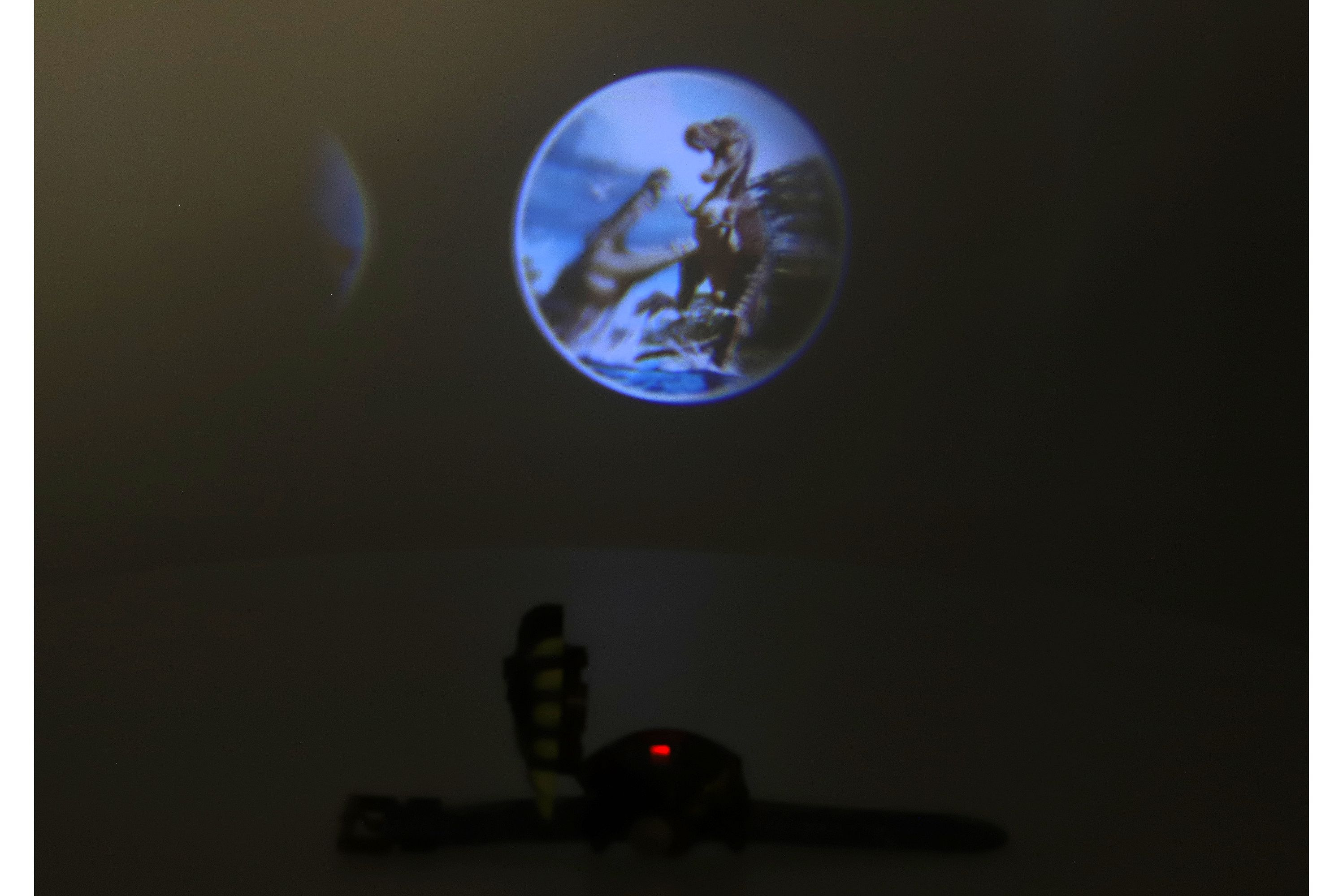 Dětské digitální hodinky s projektorem jsou skvělým doplňkem pro malé dobrodruhy! Tyto hodinky s hlavou dinosaura nejenže ukazují čas, ale také promítají obrázek dinousara na stěnu nebo strop. Snadno nastavitelný řemínek zaručí pohodlné nošení, zatímco projektor dodá času nový rozměr. Velikost hodinek: 22 cm Vhodné pro děti od 3 let