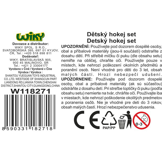 Hokej set. Velikost hokejky 57 cm. Obsahuje 2 hokejky, 2 puky.