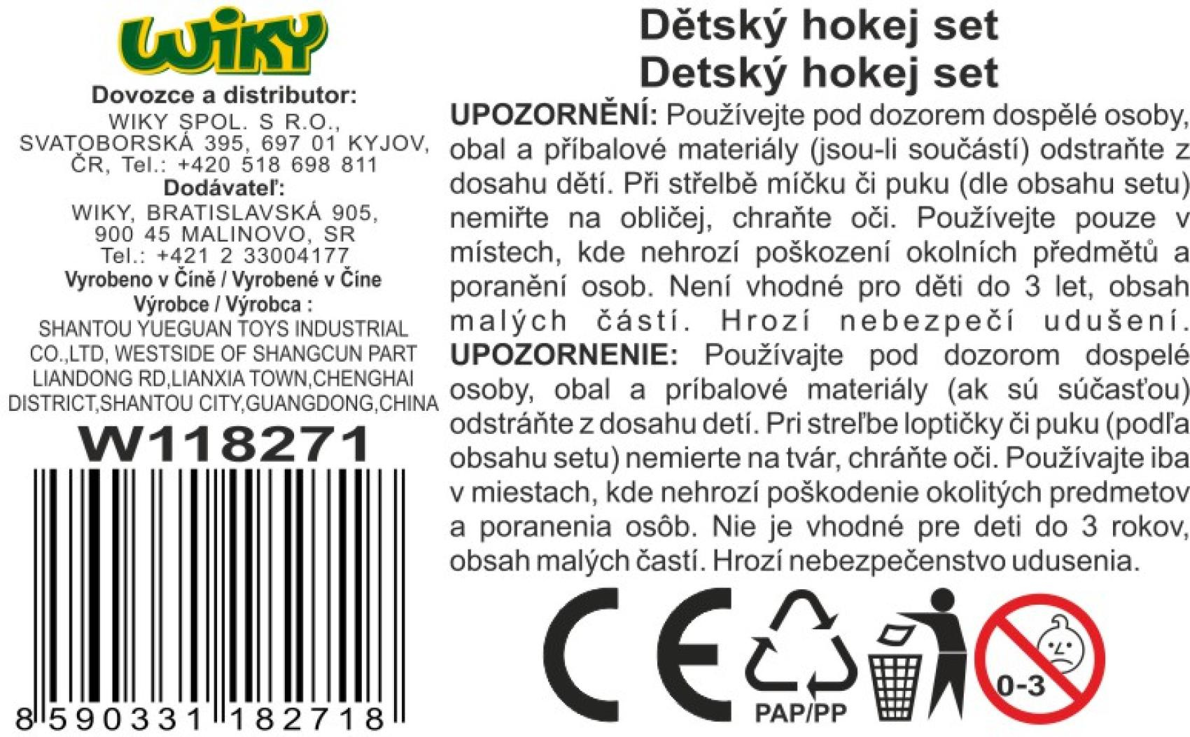 Hokej set. Velikost hokejky 57 cm. Obsahuje 2 hokejky, 2 puky.