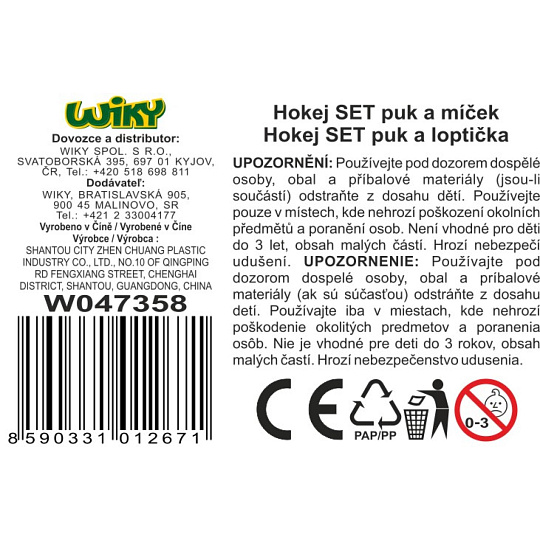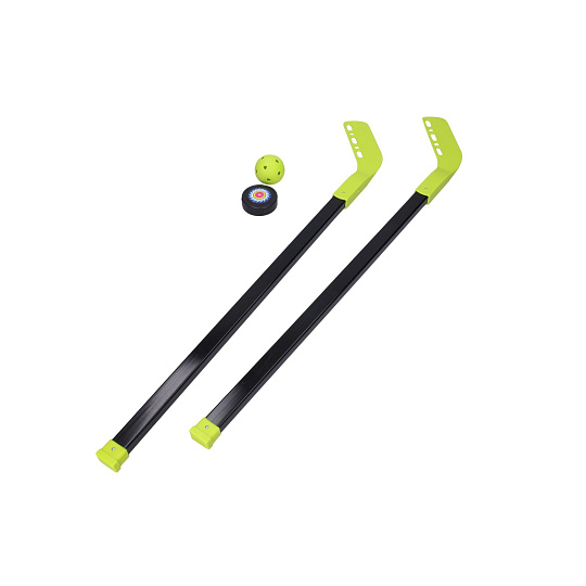 Hokej set puk a míček. Obsah balení - 2x hokejka (délka hokejky 83 cm), 1x míček (5,6 cm), 1x puk (6,3 cm).
