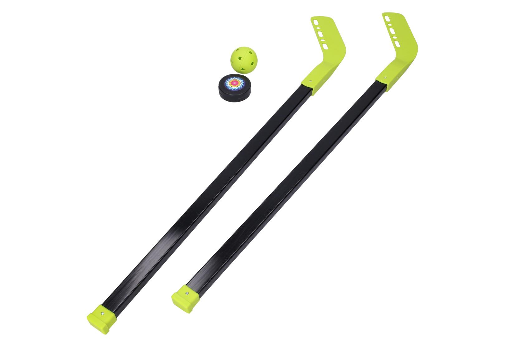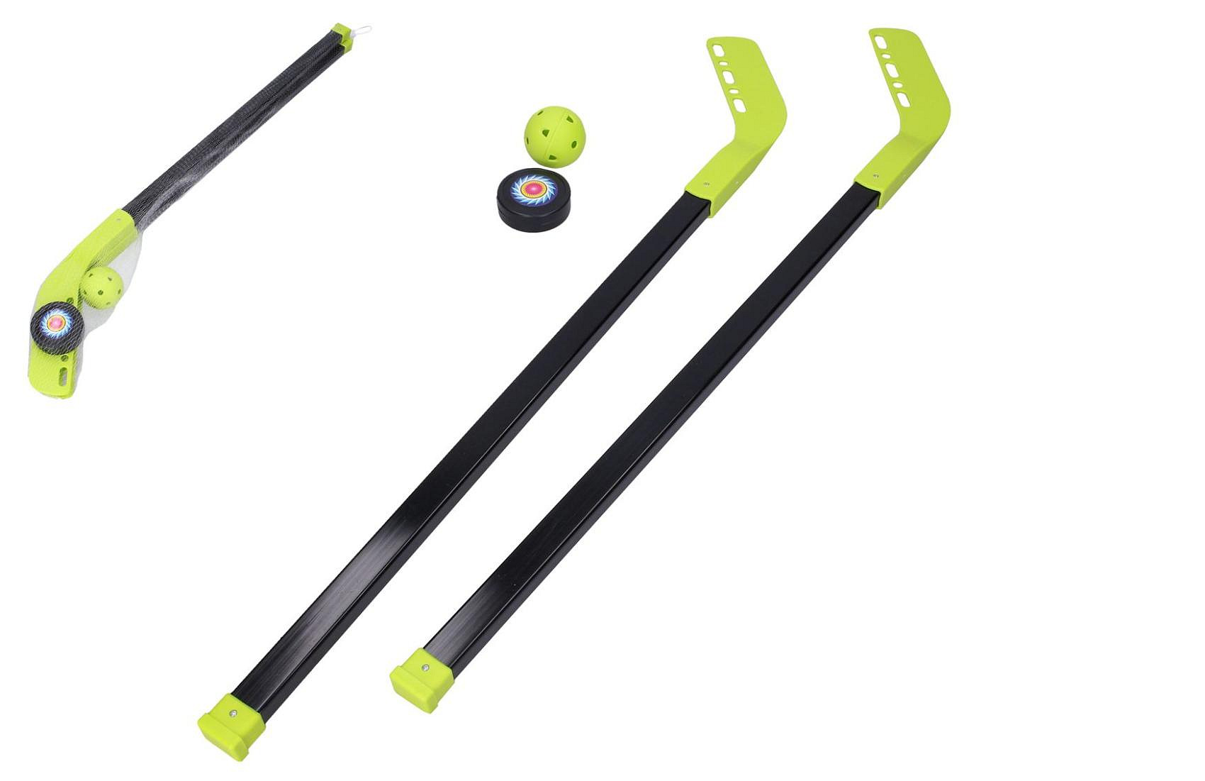 Hokej set puk a míček. Obsah balení - 2x hokejka (délka hokejky 83 cm), 1x míček (5,6 cm), 1x puk (6,3 cm).