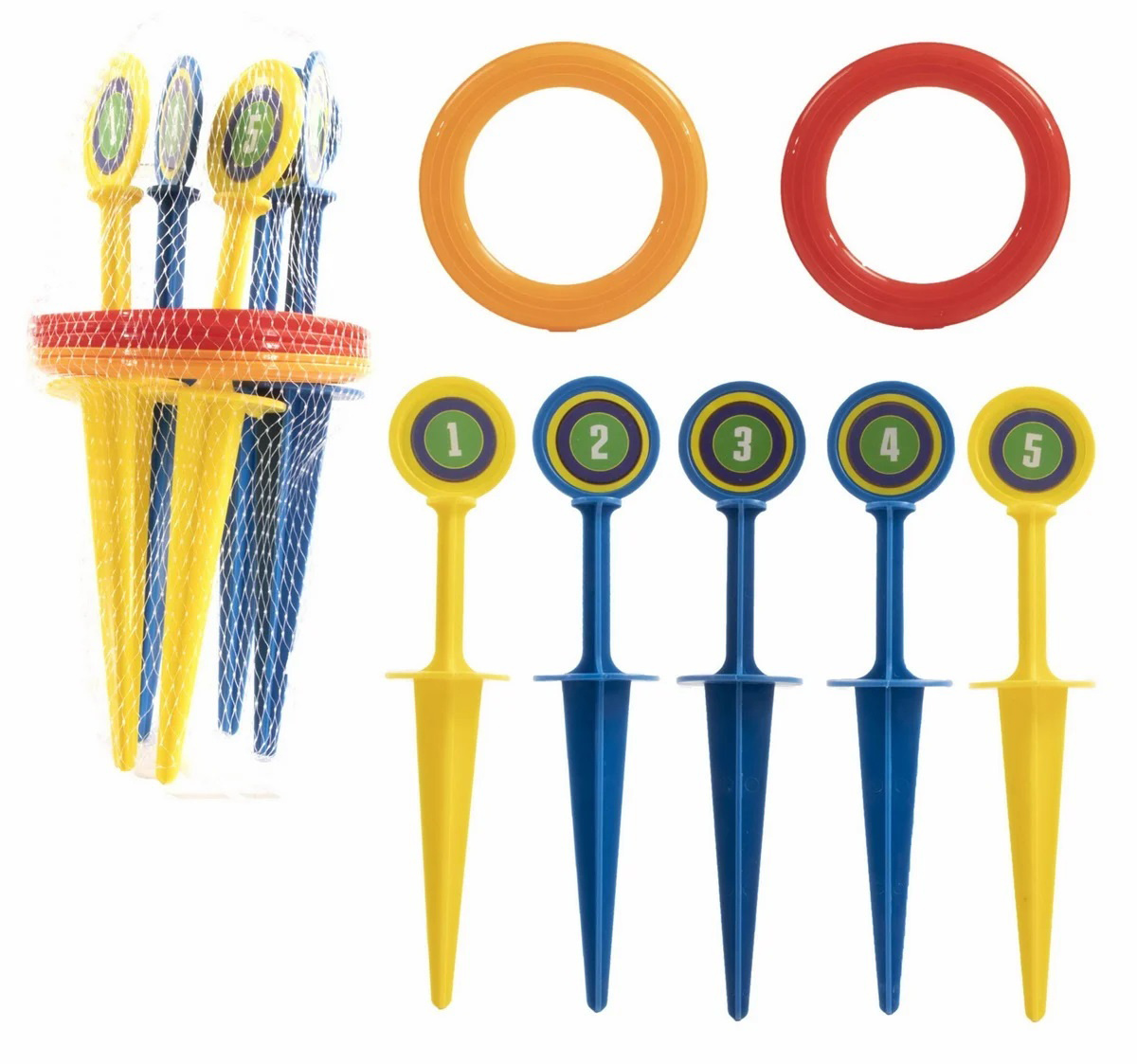 Klasická hra házení kroužků, v této verzi hážete kroužky na kolíky, každý kolík má jiné bodové ohodnocení, oproti verzi házení kroužků na kříž s kolíky, můžete kolíky libovolně rozmístit podle toho, zda hrajete s dětmi a chcete mít jednodušší verzi nebo s přáteli a zatoužíte po opravdové výzvě, v takovém případě můžete například kolíky s vyšším bodovým ziskem umístit tak, že jejich trefení bude opravdu velmi obtížné.
