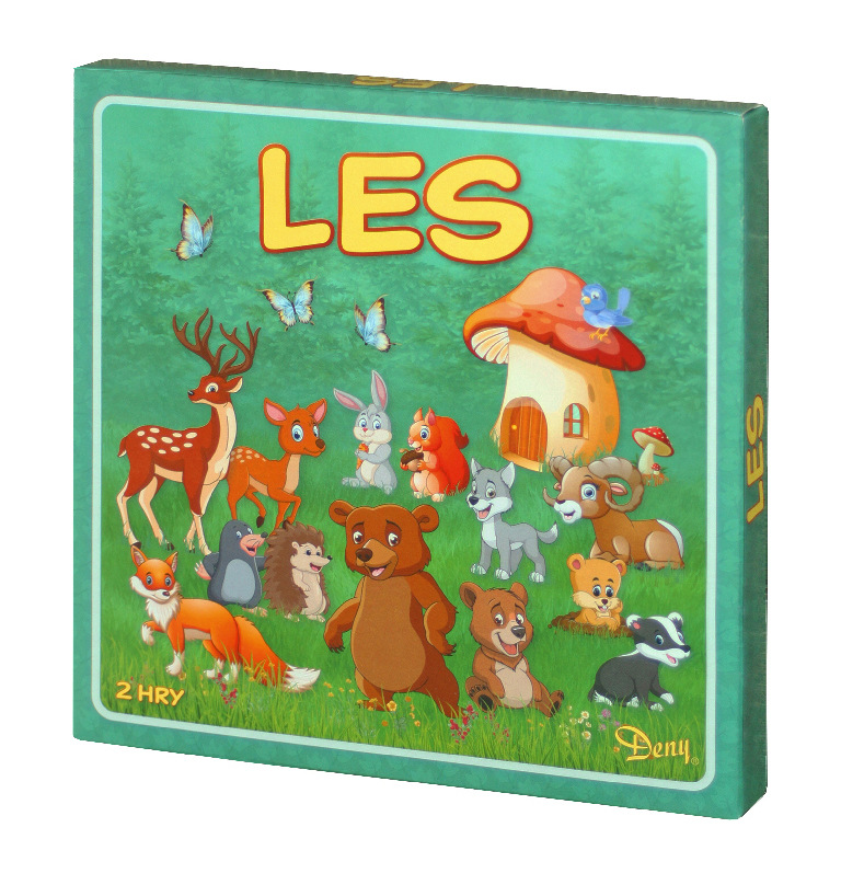 Soubor dvou společenských her - Les a Zvířátka. Obsahuje 40ks obrázkových kartiček, herní plán, kostku a figurku.