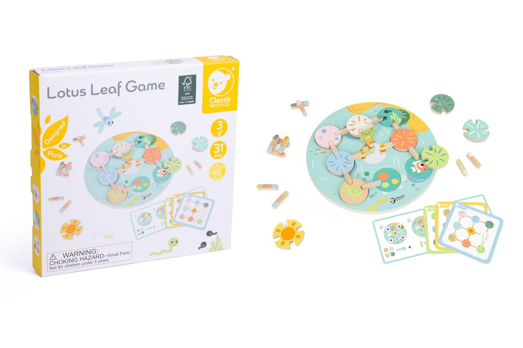 Vyzkoušejte jemnou motoriku, trpělivost a rovnováhu s krásnou dřevěnou balanční hrou Lotusový list! Cílem hry je pokládat jednotlivé dílky zvířátka, lístky nebo jiné tvary na nakloněný lotosový květ tak, aby nespadly. Hra je vhodná jak pro jednotlivce, tak pro více hráčů a rozvíjí koncentraci, koordinaci pohybů i strategické uvažování. Elegantní zpracování a přírodní materiály zaujmou malé i velké hráče. Velikost balení: 28 cm x 28 cm x4 cm Vhodné pro děti od 3 let.