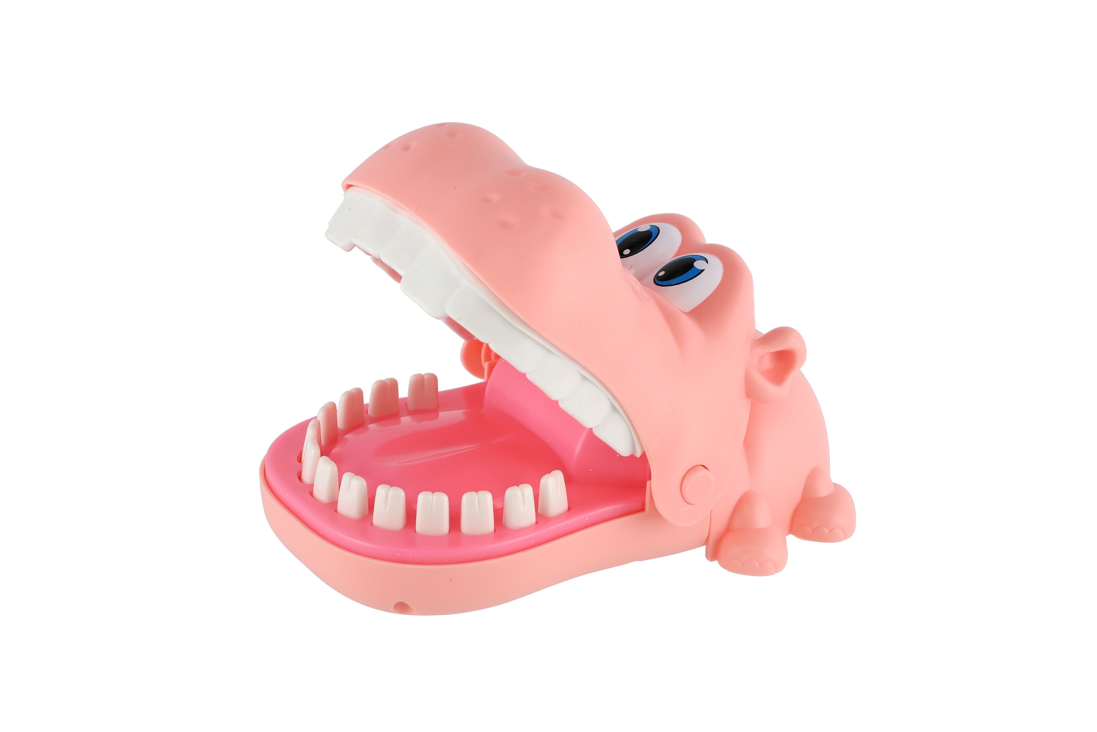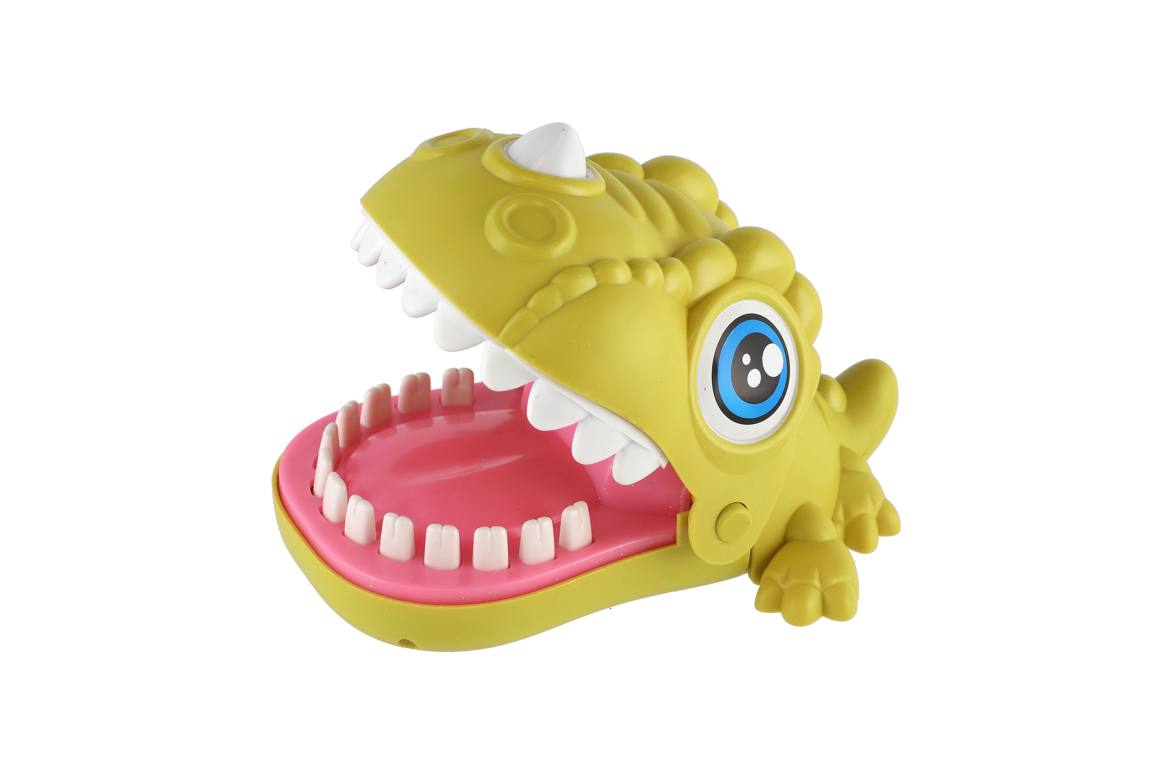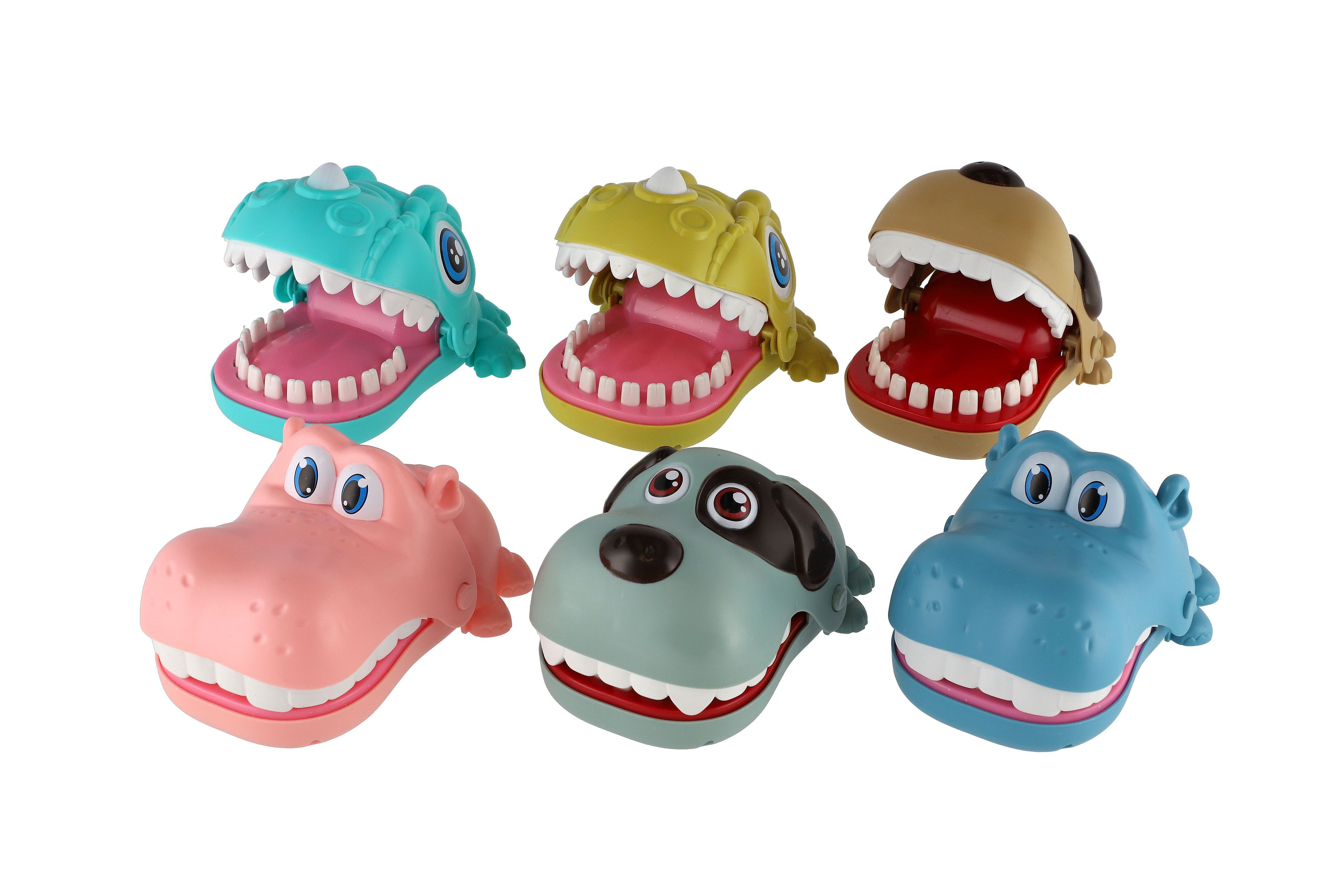 Zábavná postřehová hra zvířecí zuby, kdy zvířátko otevře tlamu a děti se střídají a postupně zatlačují jeho zuby. V určitý moment zvířátko tlamu zaklapne. Ten, koho zvířátko nekousne, vyhrává. Rozměr hračky: 12 x 6 cm Vhodné pro děti od 3 let.