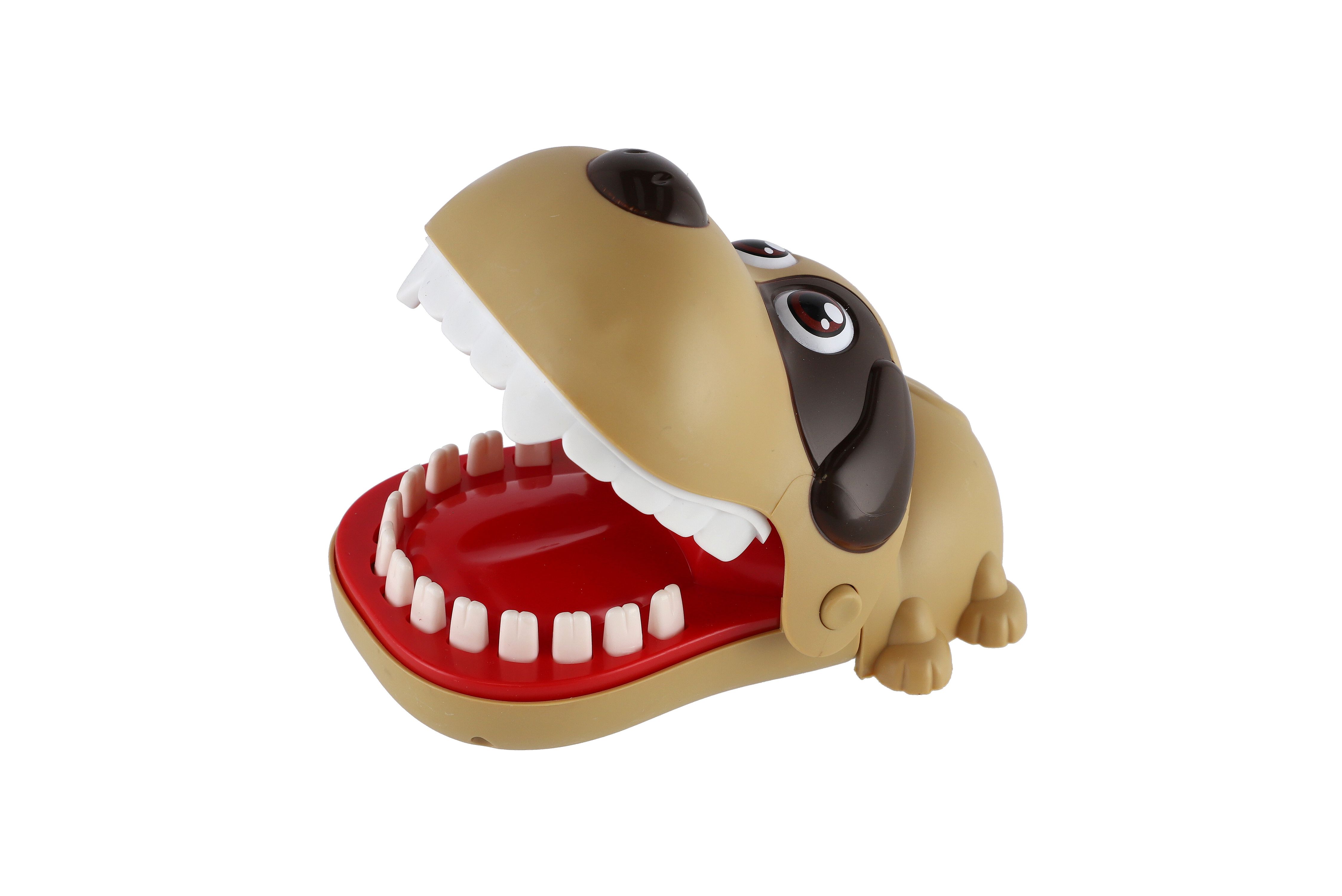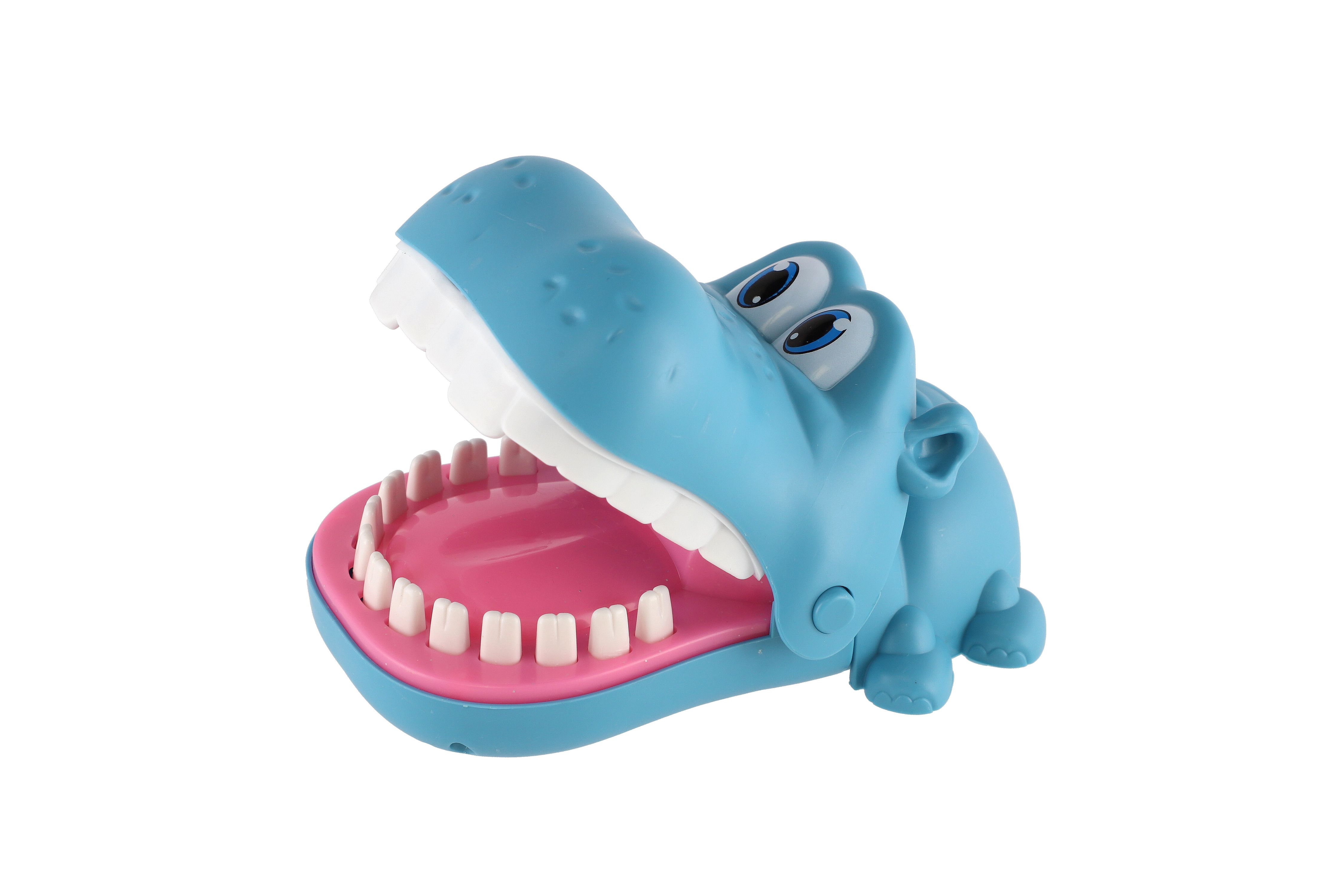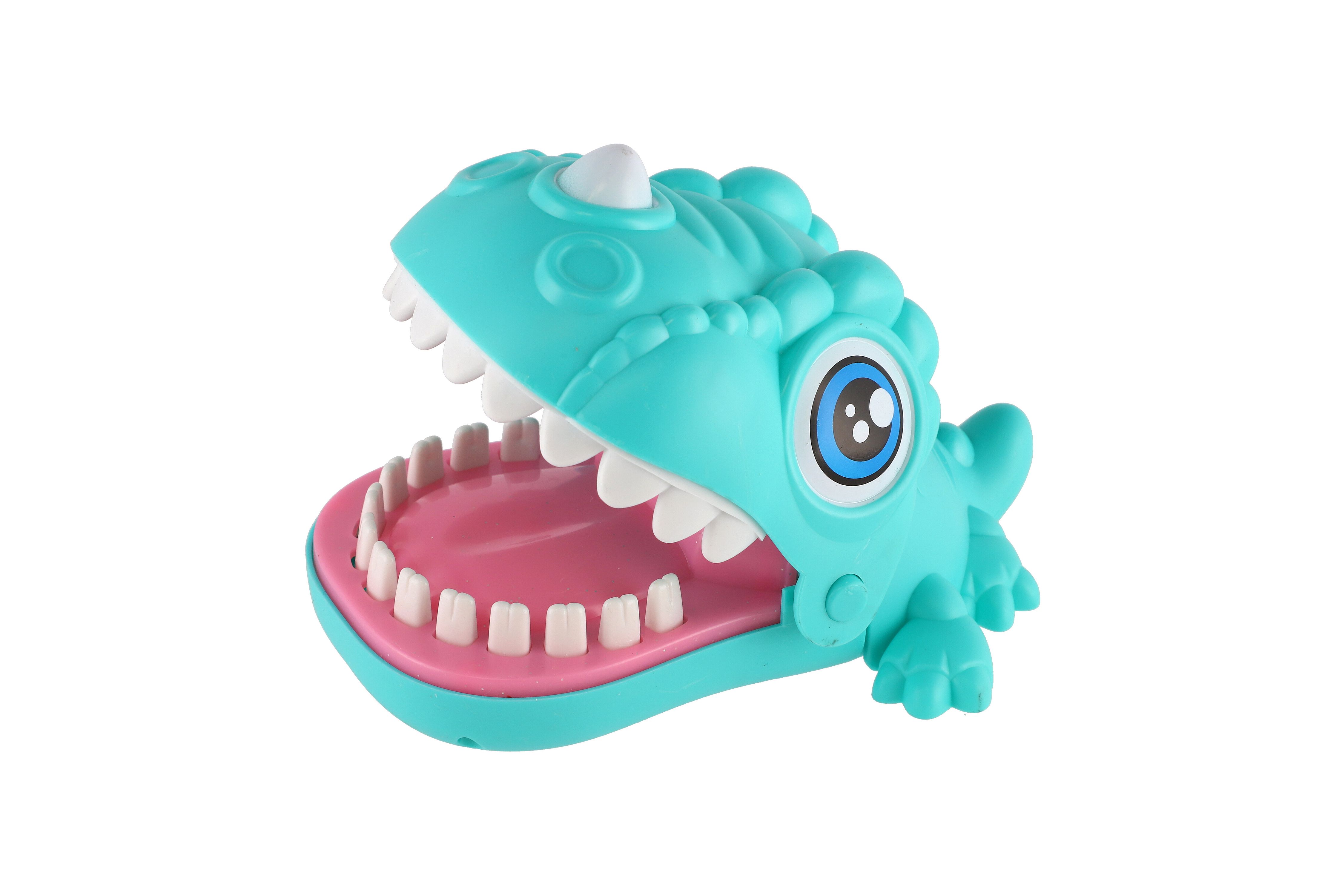 Zábavná postřehová hra zvířecí zuby, kdy zvířátko otevře tlamu a děti se střídají a postupně zatlačují jeho zuby. V určitý moment zvířátko tlamu zaklapne. Ten, koho zvířátko nekousne, vyhrává. Rozměr hračky: 12 x 6 cm Vhodné pro děti od 3 let.