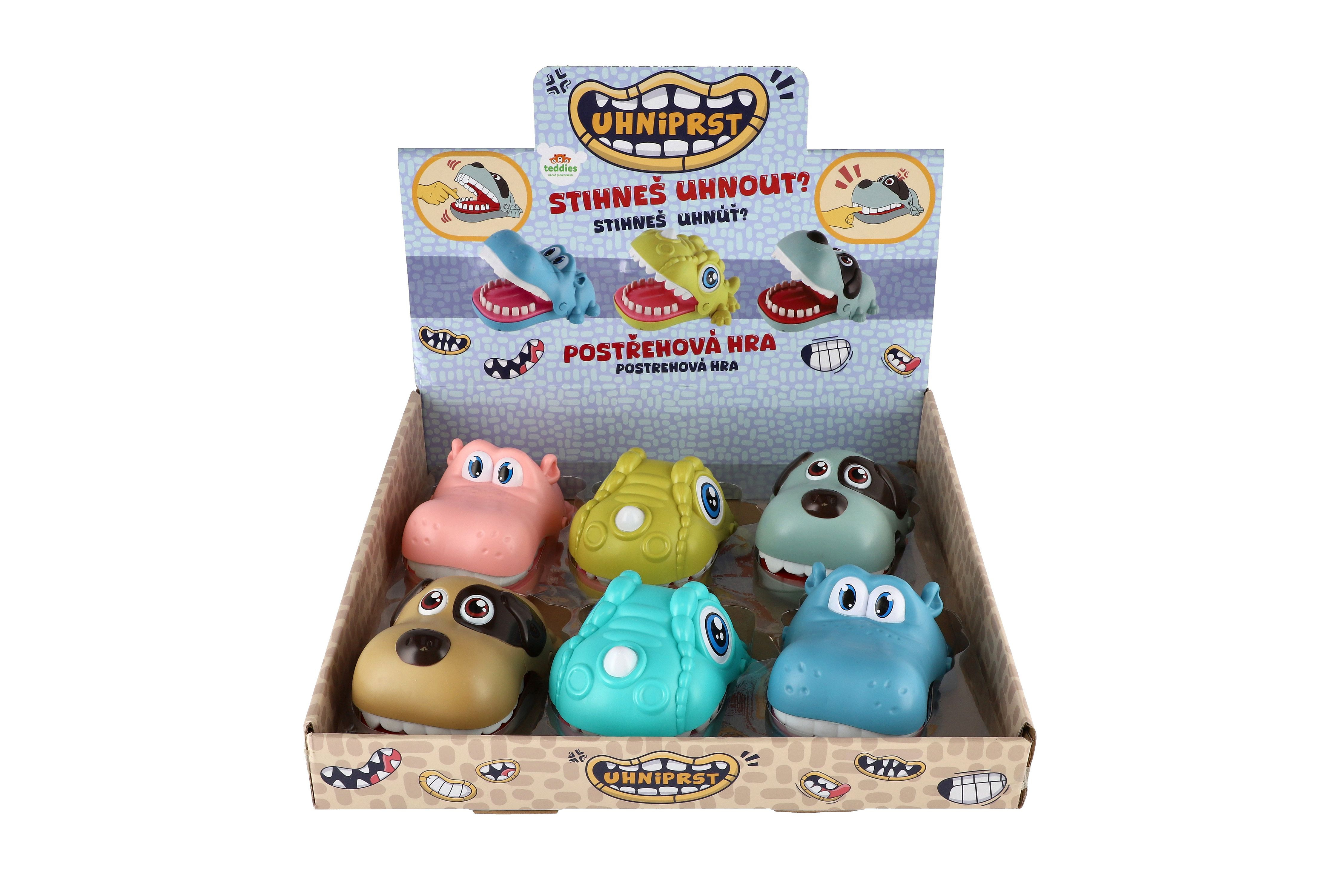 Teddies Hra postřehová UHNIPRST kousání prstů zvířátko plast 12x16cm 6 druhů