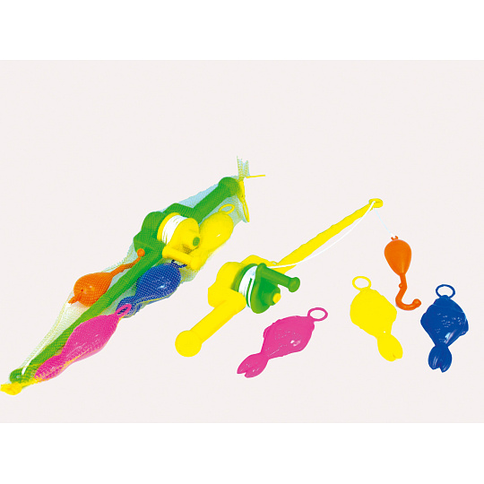 Teddies Hra ryby/rybář plast 3ks+prut 50cm asst 2 barvy v síťce