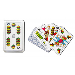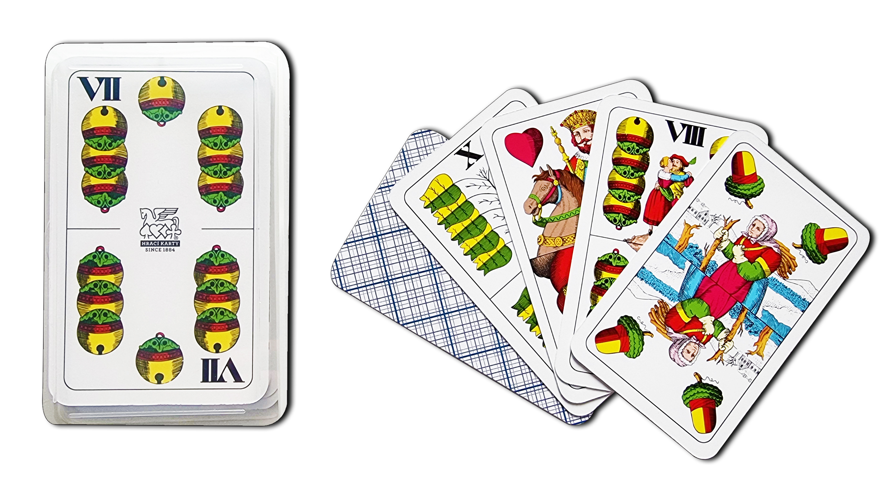 …herní sada zobrazuje na jednotlivých figurách legendu o Vilému Tellovi, obraz karet je s drobnými změnami stejný již 150 let. Obrazy jednotlivých es zobrazují roční období od jara do zimy. Károvaný revers je typický pro tuto hru. Mezi hráči je velmi oblíbený pro svoji praktičnost.