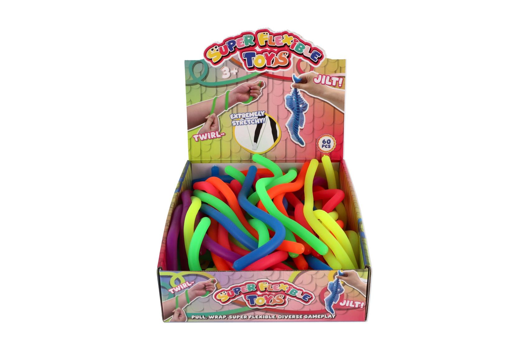 Hračka antistresová ve tvaru natahovacího „nudle“ je ideální pro uvolnění stresu, napětí nebo jen jako zábavná pomůcka pro děti i dospělé. Díky elastickému materiálu lze hračku natahovat, omotávat, mačkat nebo uzlovat, aniž by se poškodila. Hračka je dostupná v 6 výrazných neonových barvách, které upoutají pozornost a přinesou radost ze hry. Délka natahovací hračky je 27 cm. Balení obsahuje 60 ks v boxu.