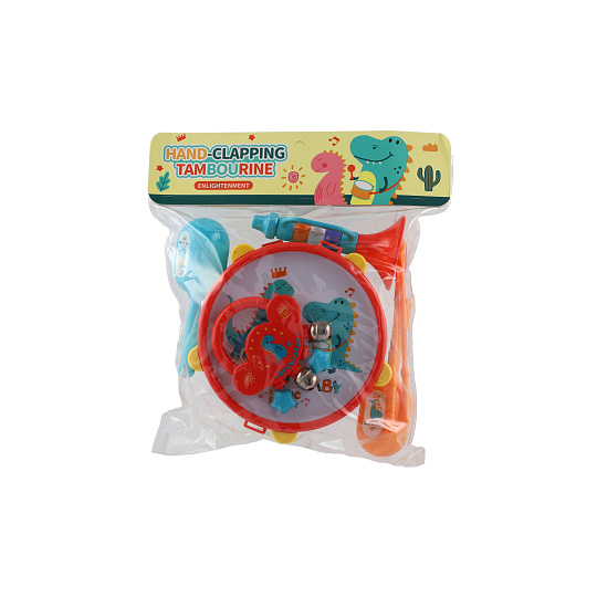Zabavte své děti se sadou hudebních nástrojů s roztomilým dinosaurem. Tato sada je skvělým způsobem, jak jim představit svět hudby a kreativity. Sada obsahuje: bubínek, rumba koule, tamburínku a trumpetu. Rozměr balení: 27,5 x 28 cm Vhodné pro děti od 3 měsíců