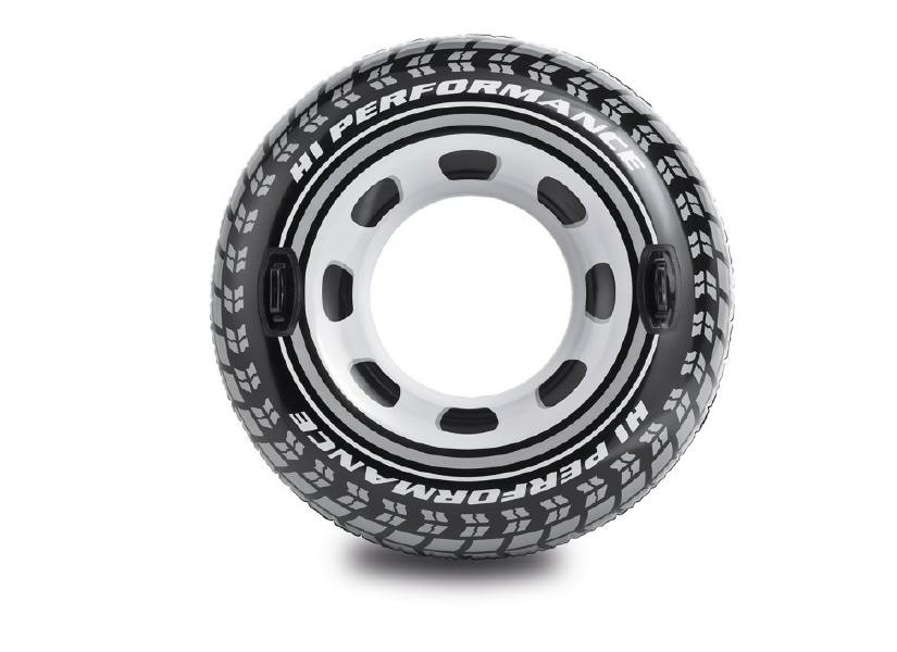 Nafukovací maxi kruh na plavání pro děti na vodu, se dvěma madly, v podobě pneumatiky. Nafukovací kruh pneumatika je plavecká pomůcka pro plavání a vodní hrátky. Tloušťka materiálu 0,25 mm, průměr kruhu 114 cm. Maximální zatížení je 100 kg. Rozměry balení 23 x 20 x 6 cm. Vhodné pro děti od 9 let.