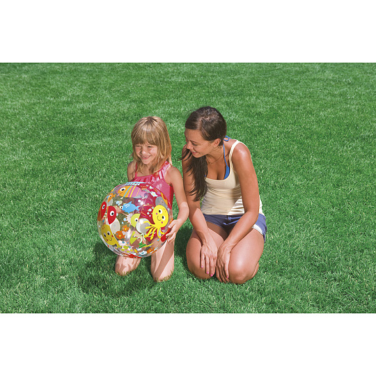 Originální, nafukovací míč Bestway do vody s motivem Tie-Dye Twist™ a jednou transparentní polovinou Ø 34 cm. Udělejte sobě a svým dětem radost a užijte si ve vodě spoustu zábavy. Vyrobeno z kvalitního a odolného PVC. Používejte pouze pod dohledem dospělé osoby a ve vodě, kde dítě dosáhne na dno. Rozměry nafouknutého míče: Ø 34 cm. Rozměry nenafouknutého míče: 46 x 34 cm. Rozměry balení: 29 x 17 x 1,7 cm. Věk: 2+