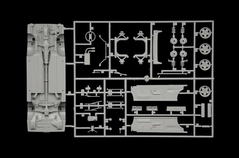 Model auta ke slepení. Měřítko: 1:24; velikost: 183 mm. Obtížnost: 2.