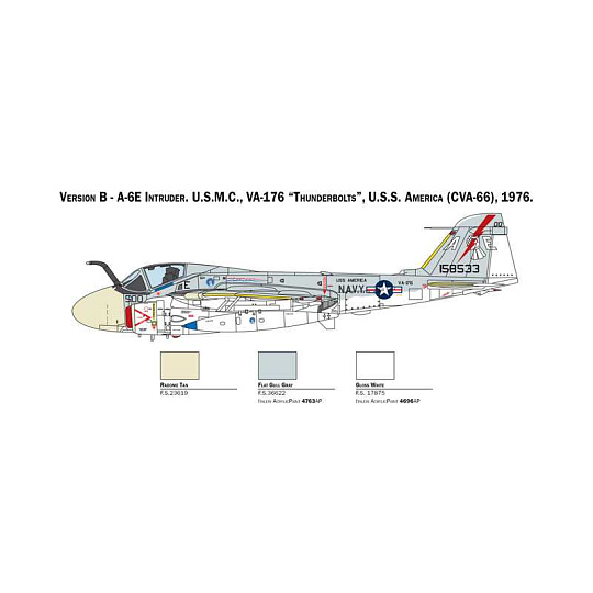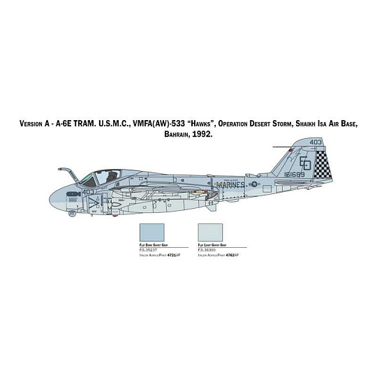 A-6 Intruder vstoupil do služby v polovině 60. let jako letoun pro útoky na pozemní cíle startující z letadlových lodí, aby nahradil zastaralé stroje jako vrtulový A-1 Skyraider a A-3 Skywarrior. Grumman Corporation vyvinula model A-6A, vycházející ze specifikací amerického námořnictva. Jednalo se o střední dvoumotorové proudové útočné letadlo do jakéhokoliv počasí, které mohlo operovat z amerických letadlových lodí. “Intruder” byl charakteristický svým robustním trupem a také uspořádáním pilotní kabiny, ve které byla umístěna dvě sedadla vedle sebe – jedno pro pilota a jedno pro zbraňového důstojníka. A-6E potom představovala tu nejlepší verzi “Intruderu” s vylepšenou avionikou i útočnými systémy, především ve variantě označované jako TRAM, což byl akronym názvu systému laserového zaměřování cílů, díky kterému byla mnohem účinnější při misích za každého počasí a opravdu smrtící při detekci a útocích na nepřátelské cíle. Kromě toho unesla na svých křídelních pylonech působivý útočný arzenál jako konvenční bomby, laserem naváděné bomby Paveway, protilodní střely Harpoon nebo protiradarové střely HARM. Tento stroj se aktivně zúčastnil bojových misí při operaci Pouštní bouře, do kterých startoval z pozemních základen i letadlových lodí amerického námořnictva.