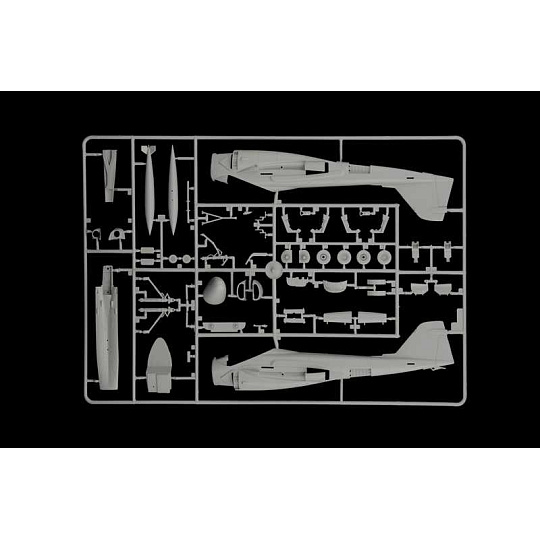 Model letadla ke slepení. Velikost: 1:72; 23 cm. Balení obsahuje polepy pro 2 verze modelu.