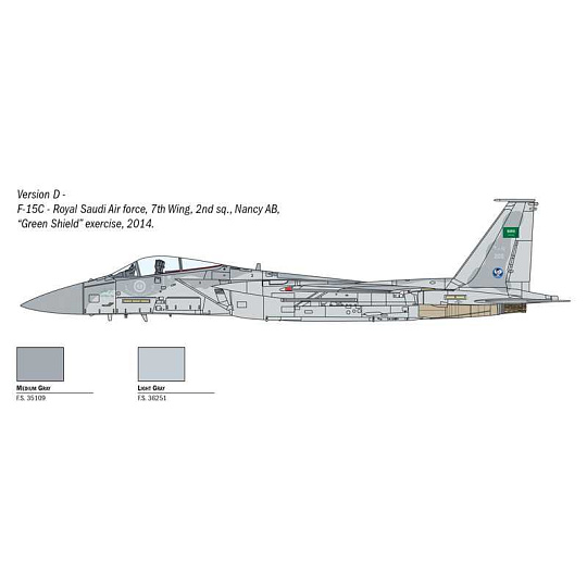 Mc Donnel Douglas F-15 je jednomístný americký stíhací letoun do každého počasí, který byl vyvinut se specifickým cílem získávat a udržovat vzdušnou převahu. F-15 Eagle vznikal během 70. let, kdy letectvo Spojených států potřebovalo moderní letoun s extrémní výkonností. F-15C představuje jeho modernější verzi, kterou v současnosti hojně využívá americké letectvo, americká národní garda i letecké složky dalších zemí jako Japonsko, Izrael a Saúdská Arábie. F-15 se zúčastnila také války v Zálivu v roce 1991, ve které dokázala koaličním jednotkám zaručit leteckou převahu. Jedná se o neuvěřitelně efektivní stíhací letoun s působivým počtem sestřelených nepřátel. Kromě 20mm děla M61 může používat celou řadu střel typu vzduch-vzduch a díky dvojici silných turbodmychadlových motorů Pratt & Whitney F-100 s přídavným spalováním dokáže “Eagle” dosáhnout maximální rychlosti 2,5 Machu.