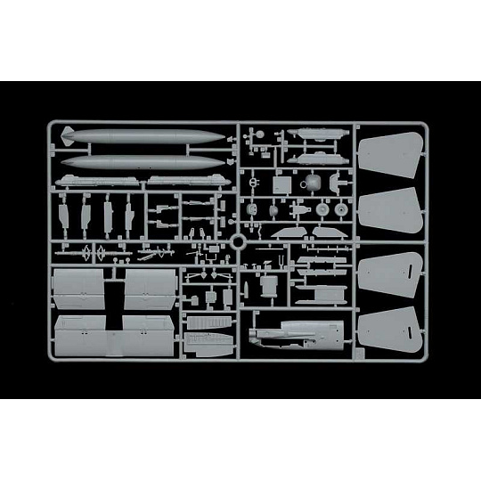 Model letadla ke slepení. Velikost: 1:48; 33,8 cm. Balení obsahuje polepy pro 3 verze modelu.