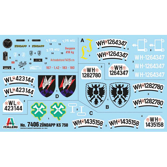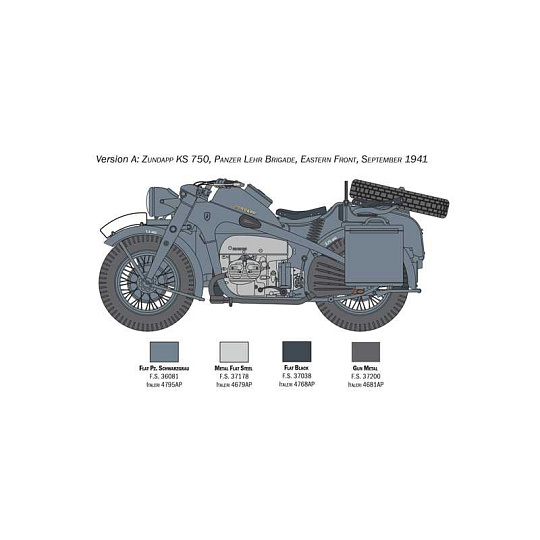 Italeri Model Kit military 7406 - Zundapp KS 750 with sidecar (1:9)