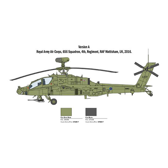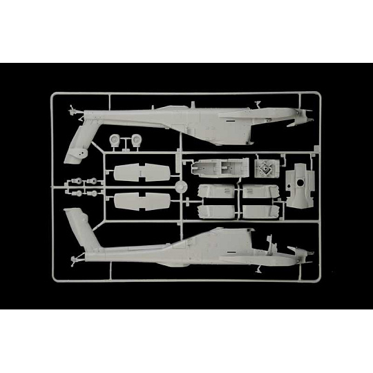 Model vrtulníku ke slepení. Velikost: 1:48; 31,2 cm. Balení obsahuje polepy pro 5 verzí modelu. Informace o originálu: AH-64 Apache lze považovat za nejslavnější útočný vrtulník v dějinách. Byl navržen tak, aby mohl operovat v přední linii a plnit mise proti tankům a vrtulníkům, přepadové mise i mise blízké letecké podpory za všech po