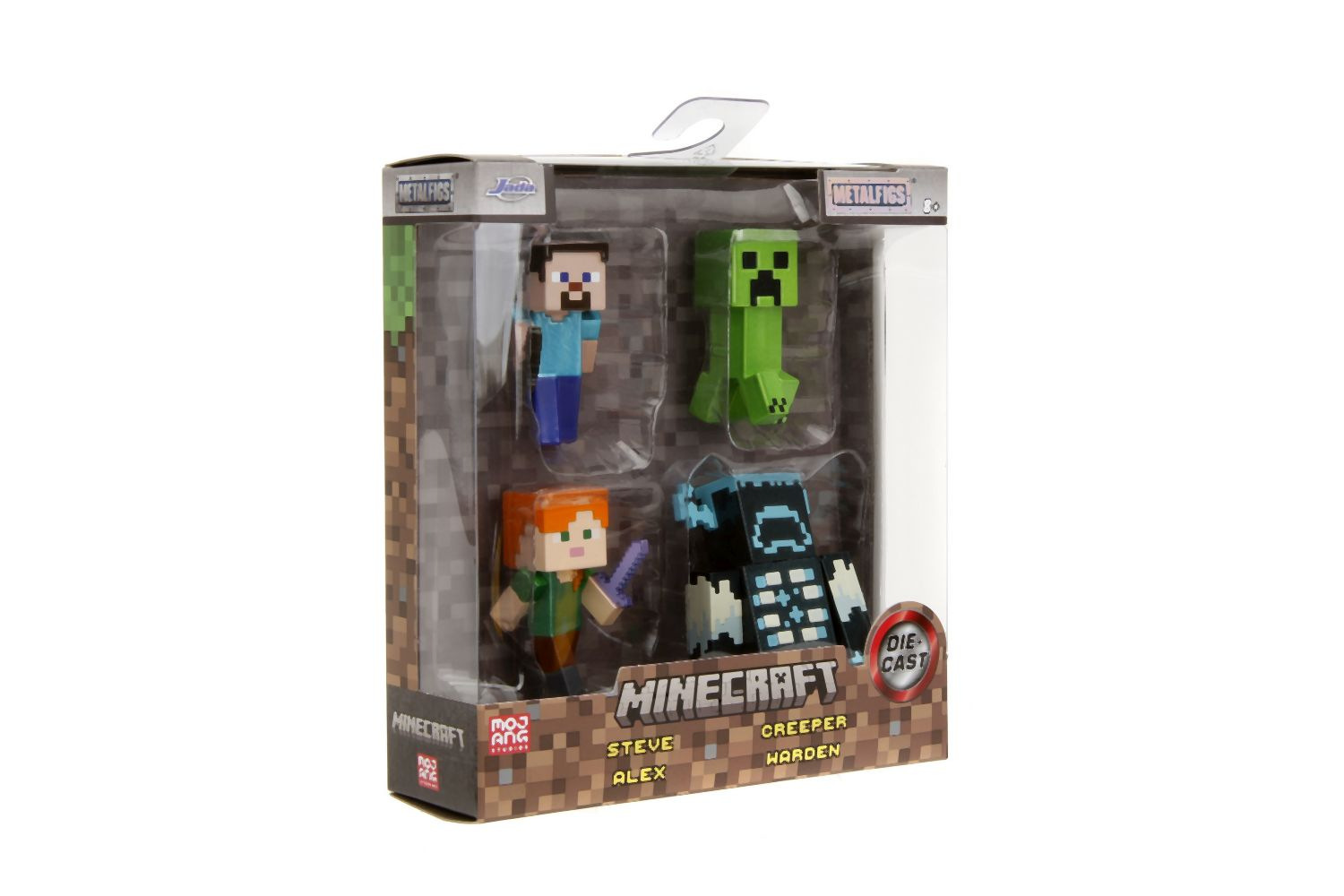 Sada kovových sběratelských figurek Minecraft, výška 6 cm. Steve, Alex, Crepper, Warden.