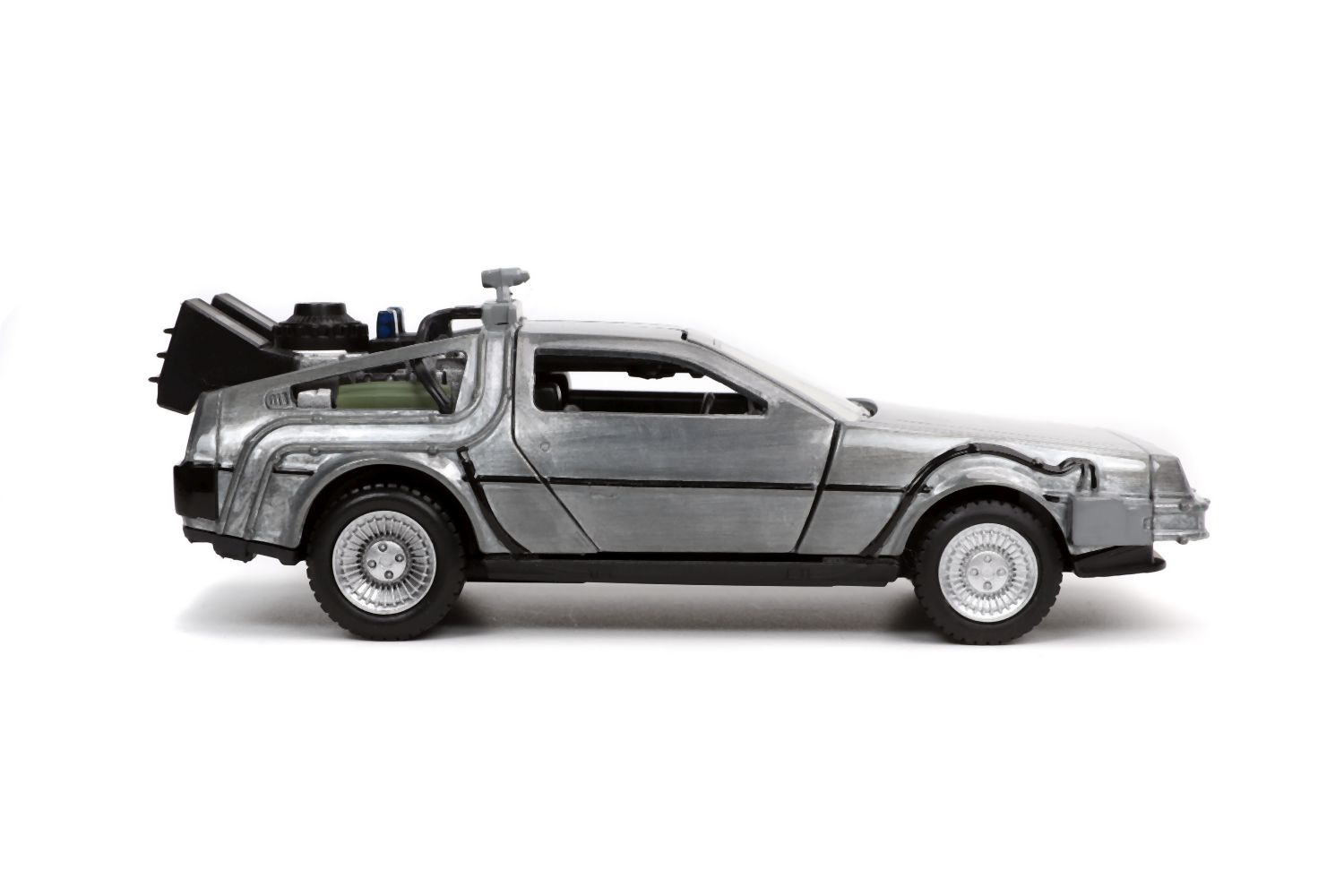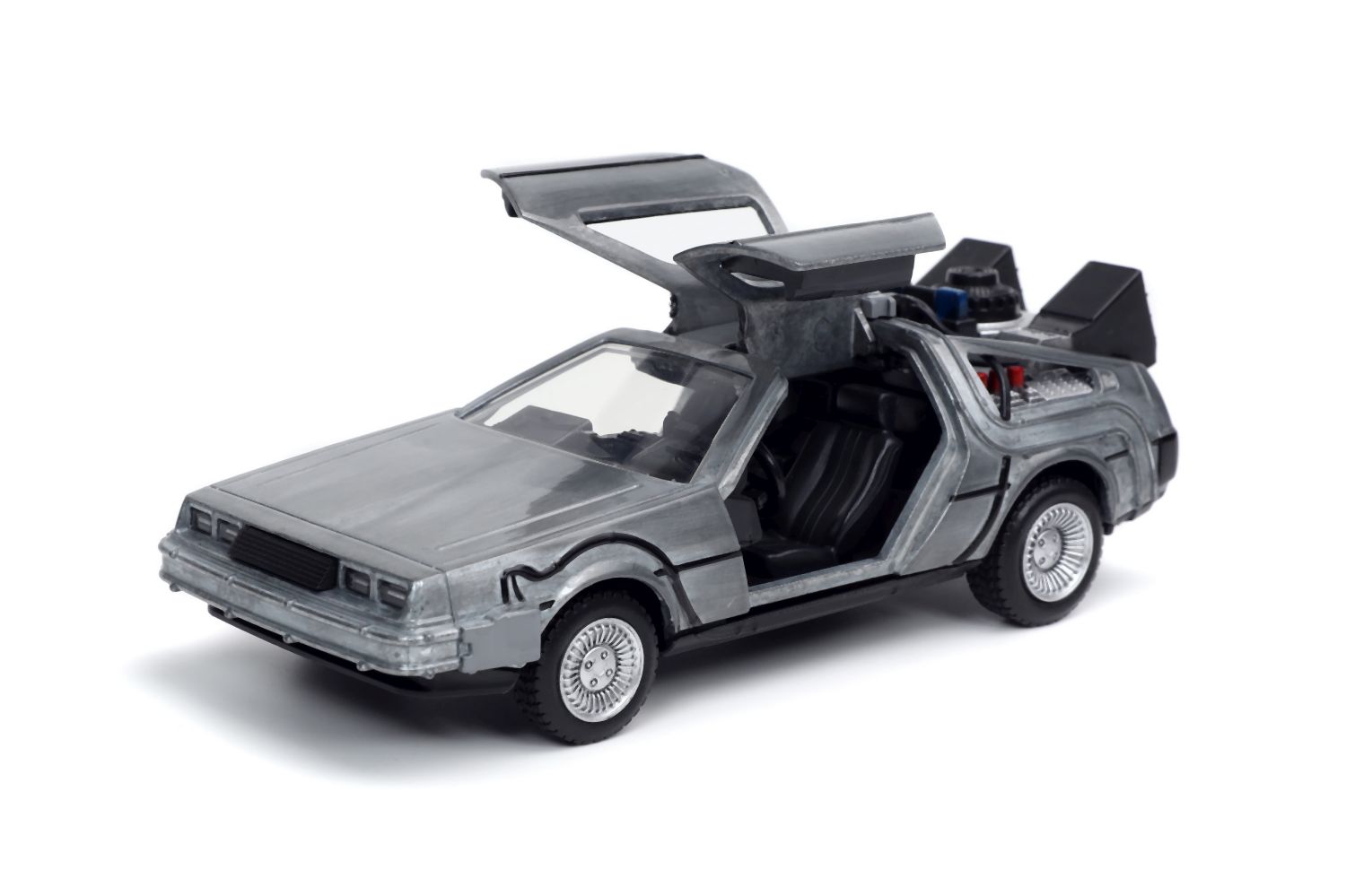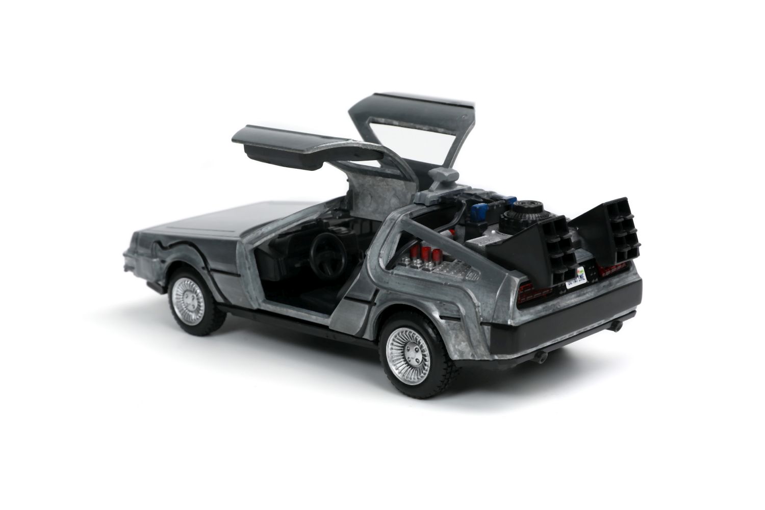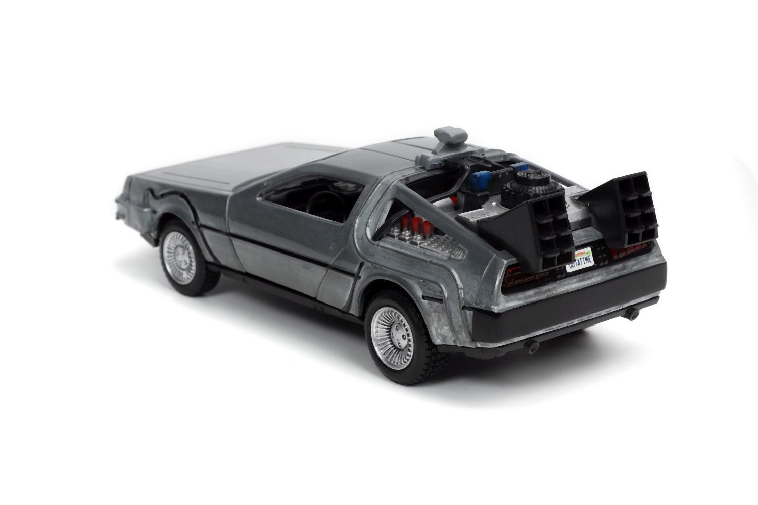Kovový model Time Machine Back to the Future 1 na volnoběh v měřítku 1:32 s otevíracími dveřmi. Displej obsahuje 6 ks.
