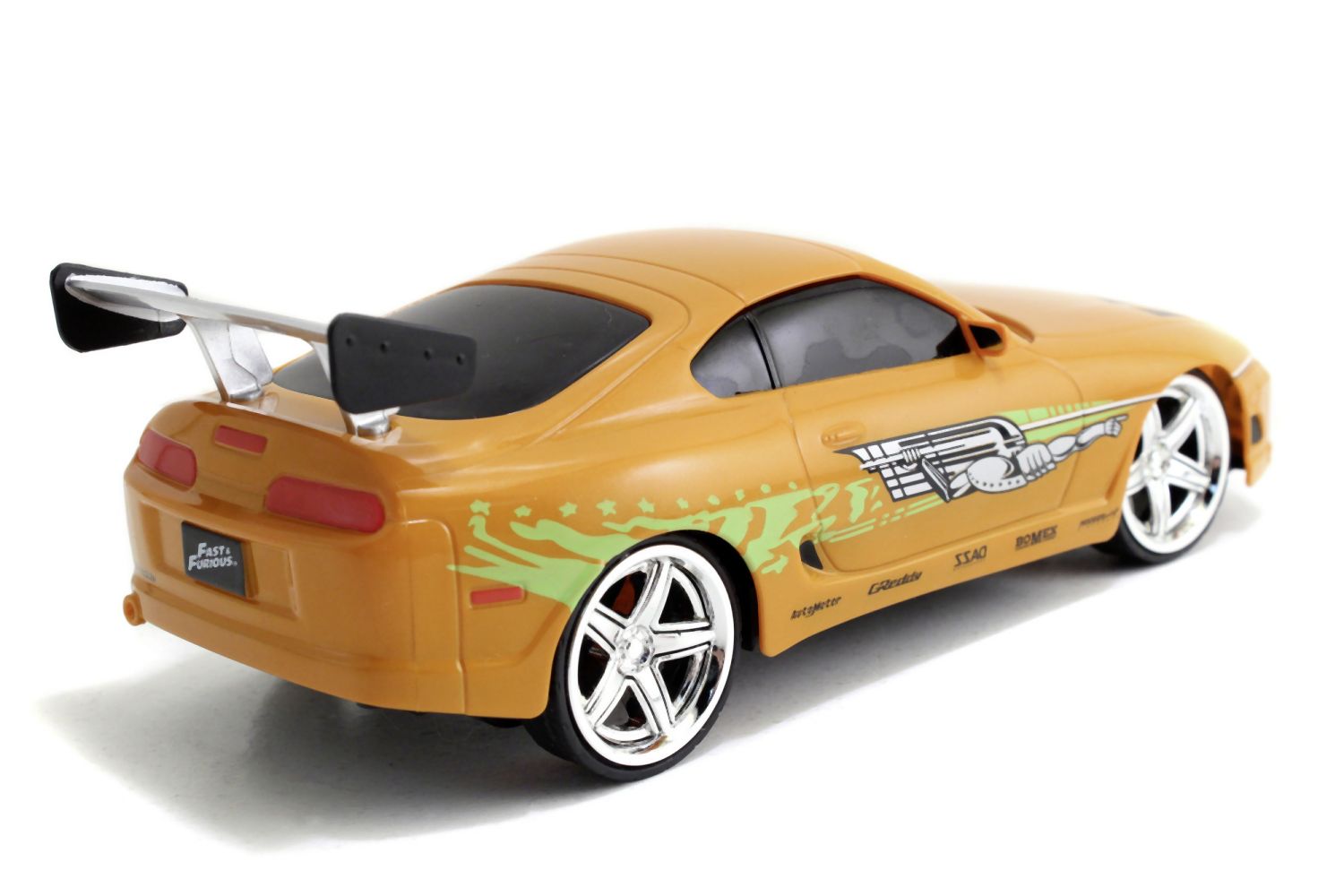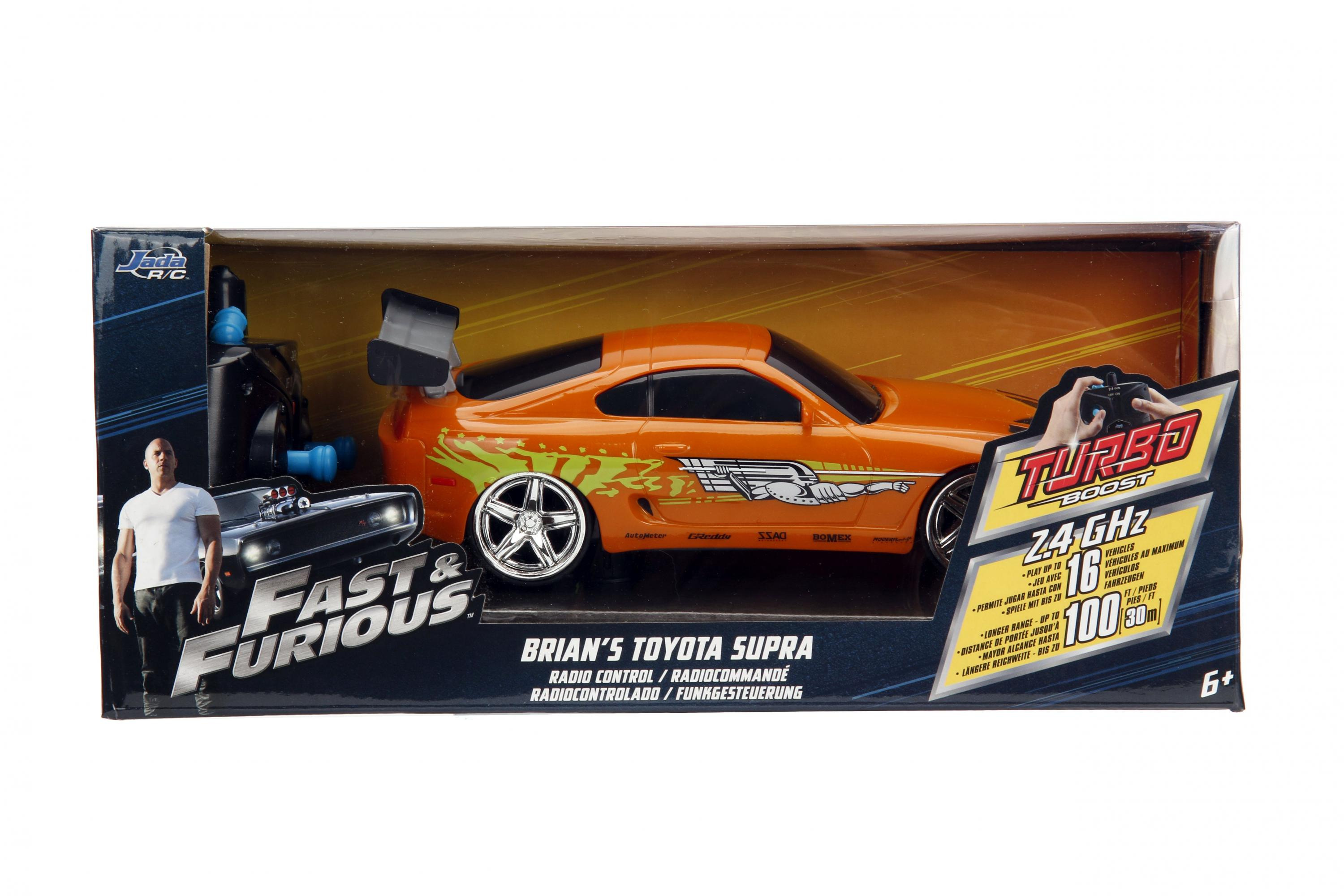 Brianovo auto Toyota Supra na dálkové ovládání z akčního filmu Rychle a zběsile. 2 kanály (jezdí vpřed, vzad, vlevo a vpravo). Frekvence 2,4 GHz. Turbo funkce. Barva oranžová. V měřítku 1:24.