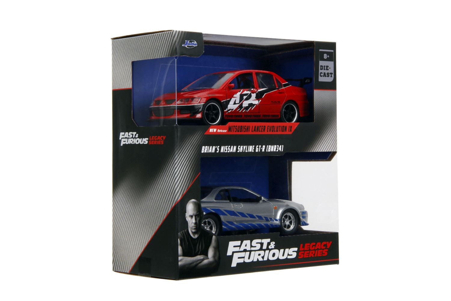 Jada Rychle a zběsile Twin Pack 2006 Mitsubishi Lancer Evo IX + Brianův 2002 Nissan Skyline GTR R34, 1:32 Wave 4/2