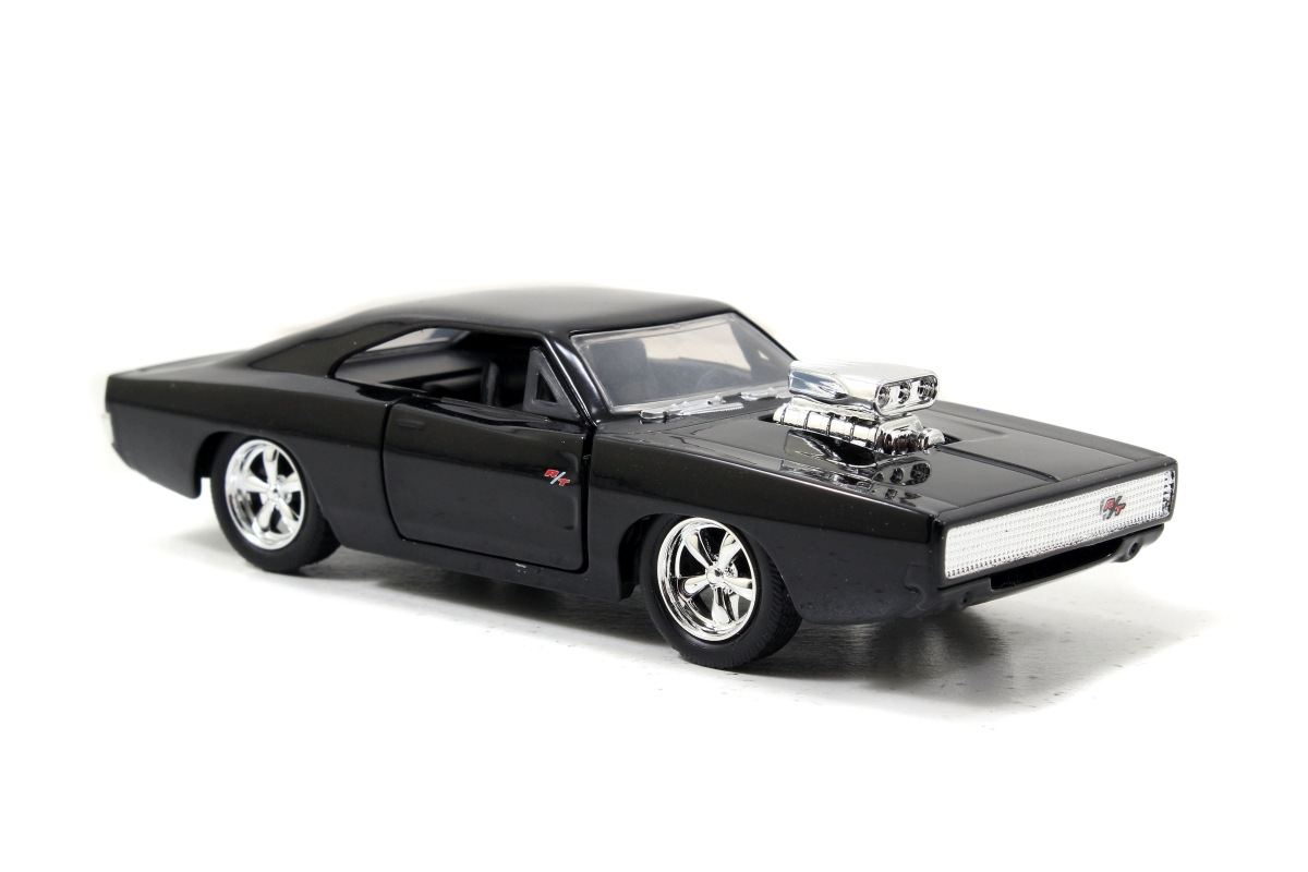 Kovové modely aut z filmu Rychle a zběsile, Brianova Toyota Supra a Domův 1970 Dodge Charger v měřítku 1:32, gumové pneumatiky, otevírací části, volnoběh.