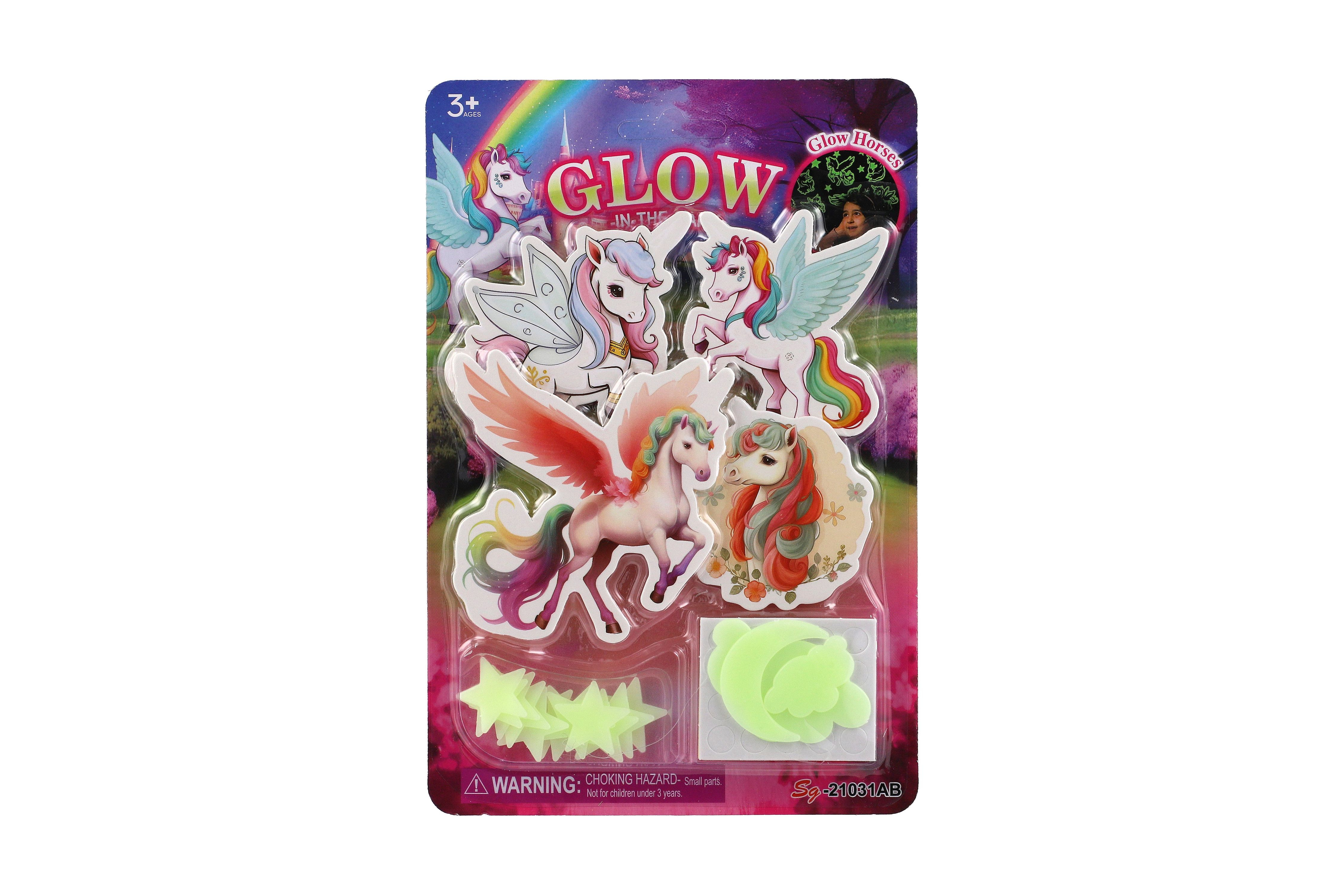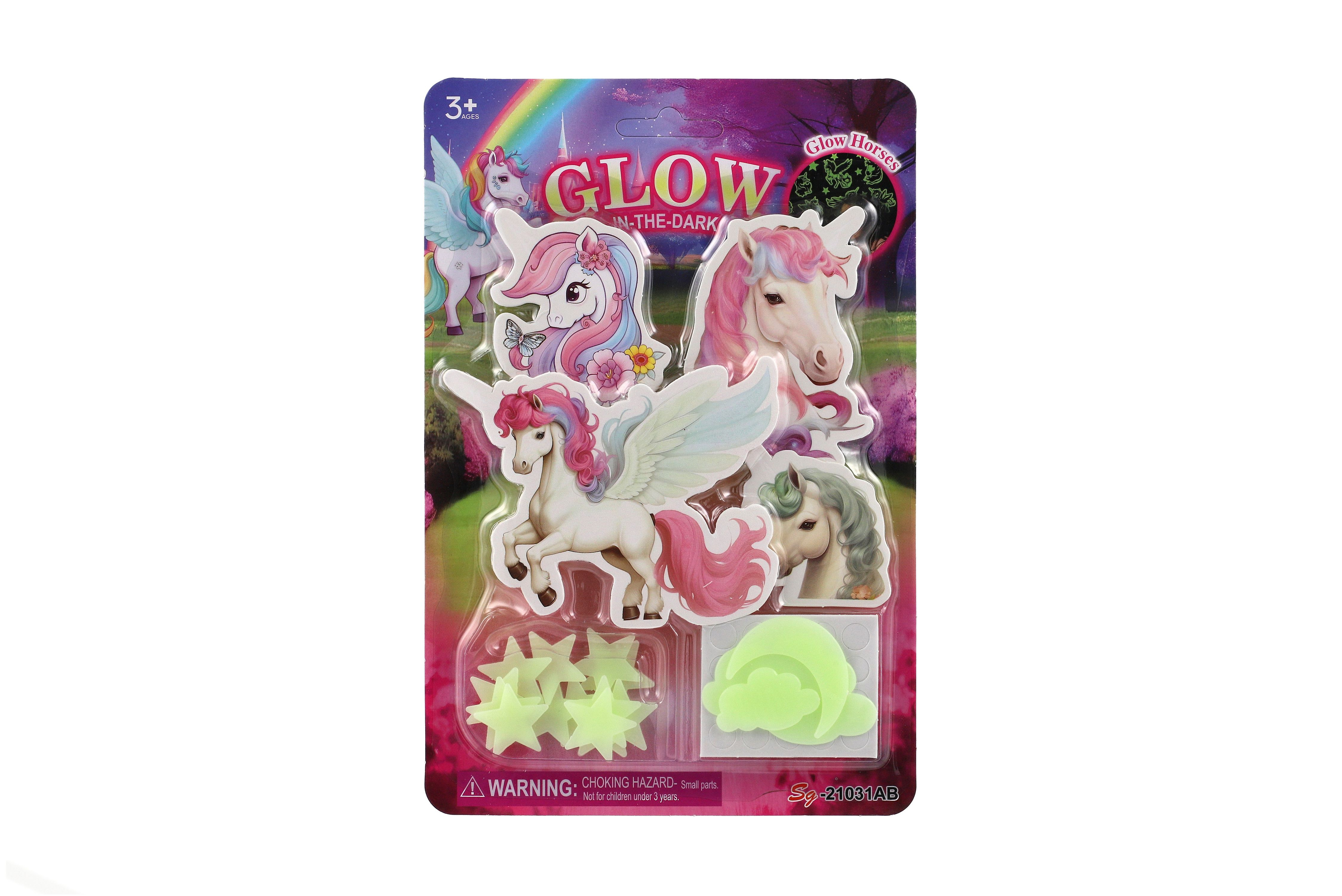 Jednorožci na zeď/stop svítící ve tmě papír/plast 2 druhy na kartě