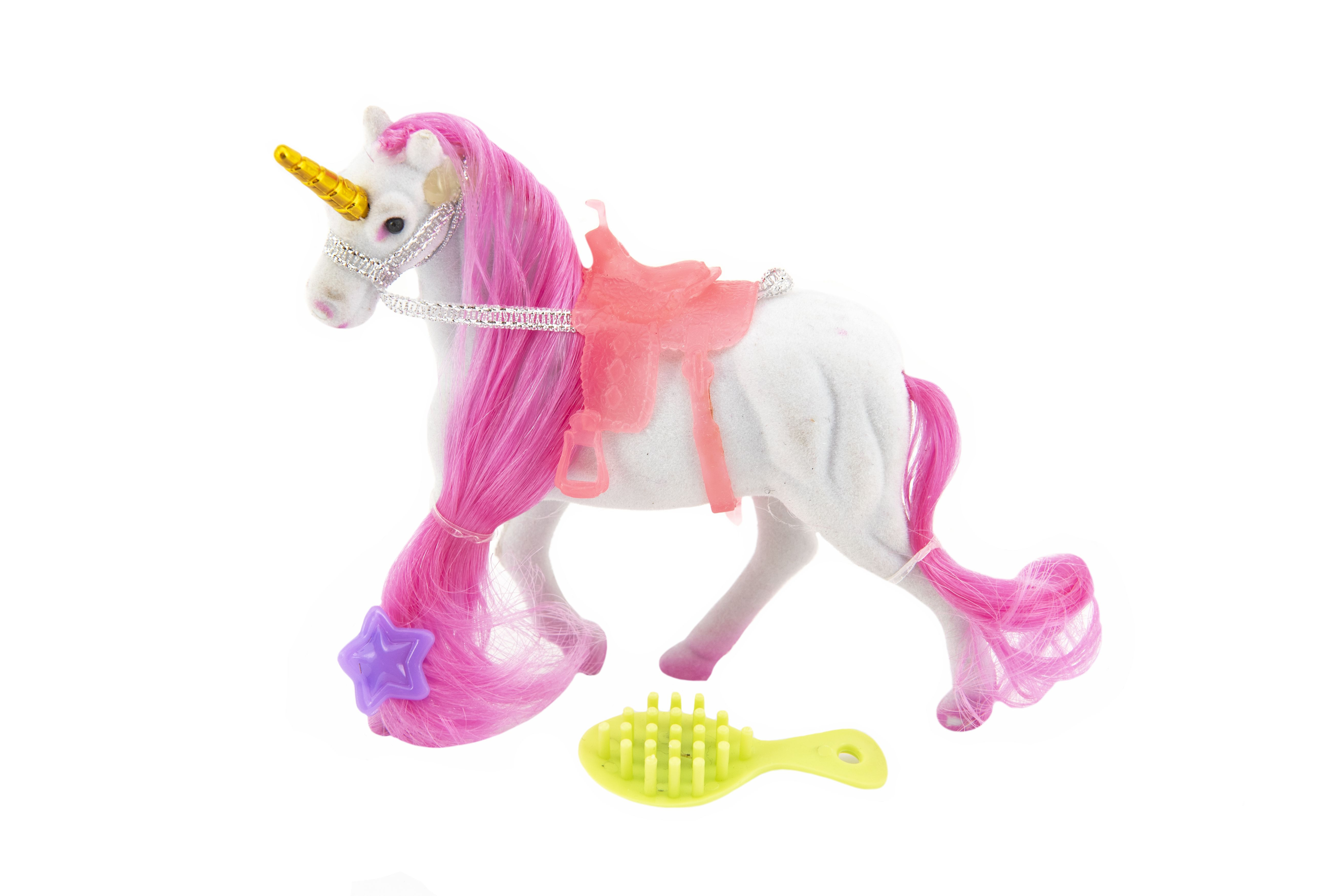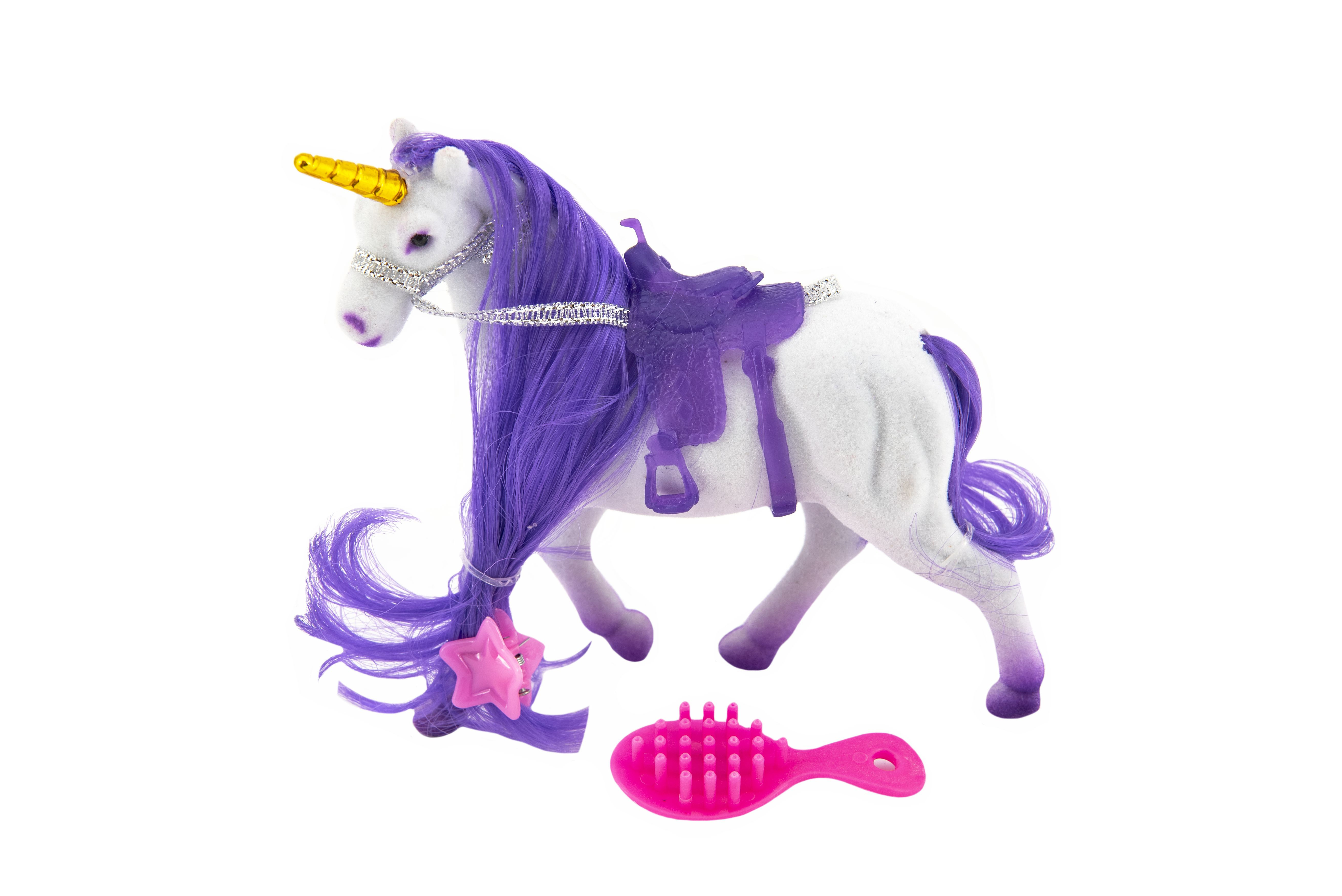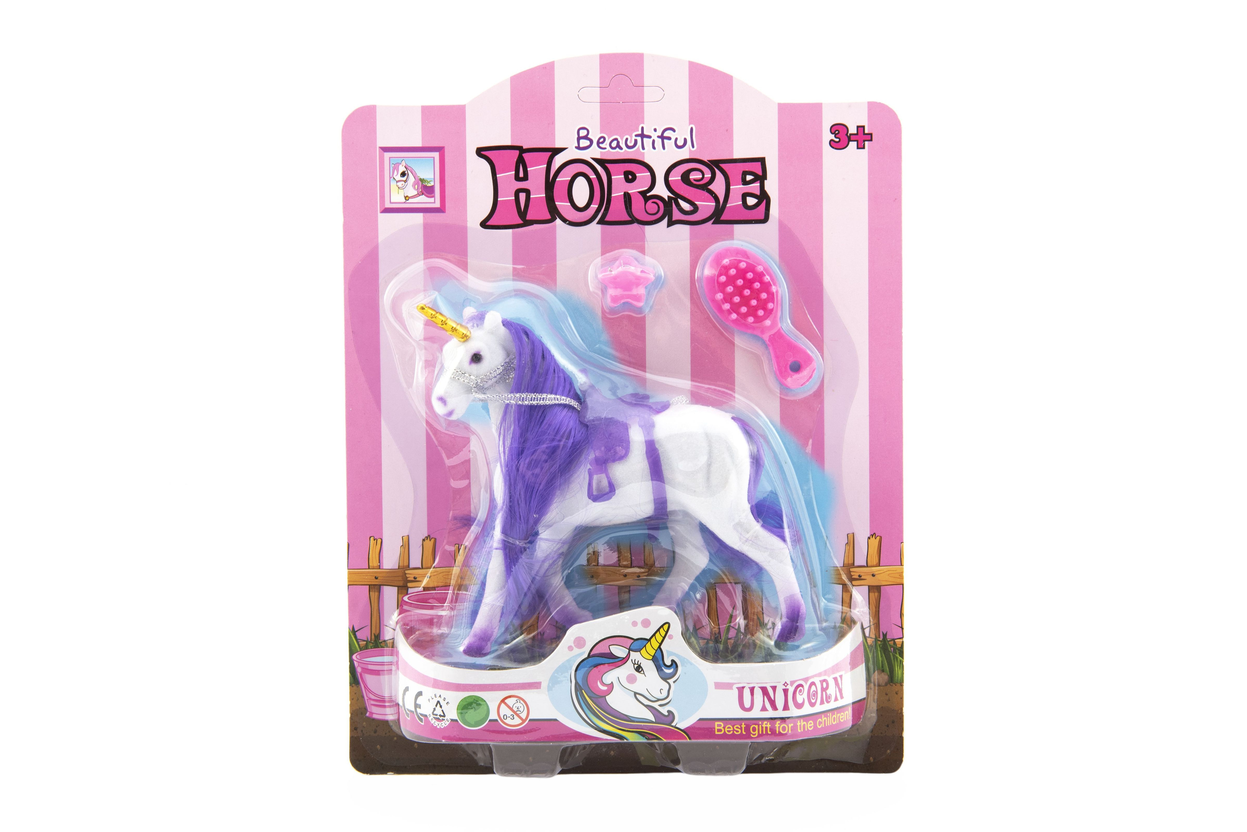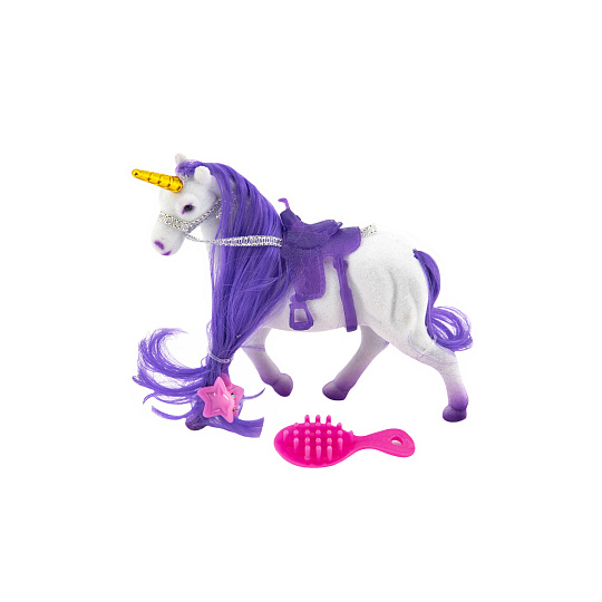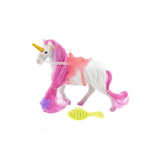 Krásný jednorožec v sadě s hřebenem a sponkou. Jednorožec má krásnou hřívu a ocas, který můžete česat. Ideální dárek pro všechny obdivovatele a milovníky koní. Jednorožec je plastový s povrchovou úpravou fliška. Vhodné pro děti od 3 let.