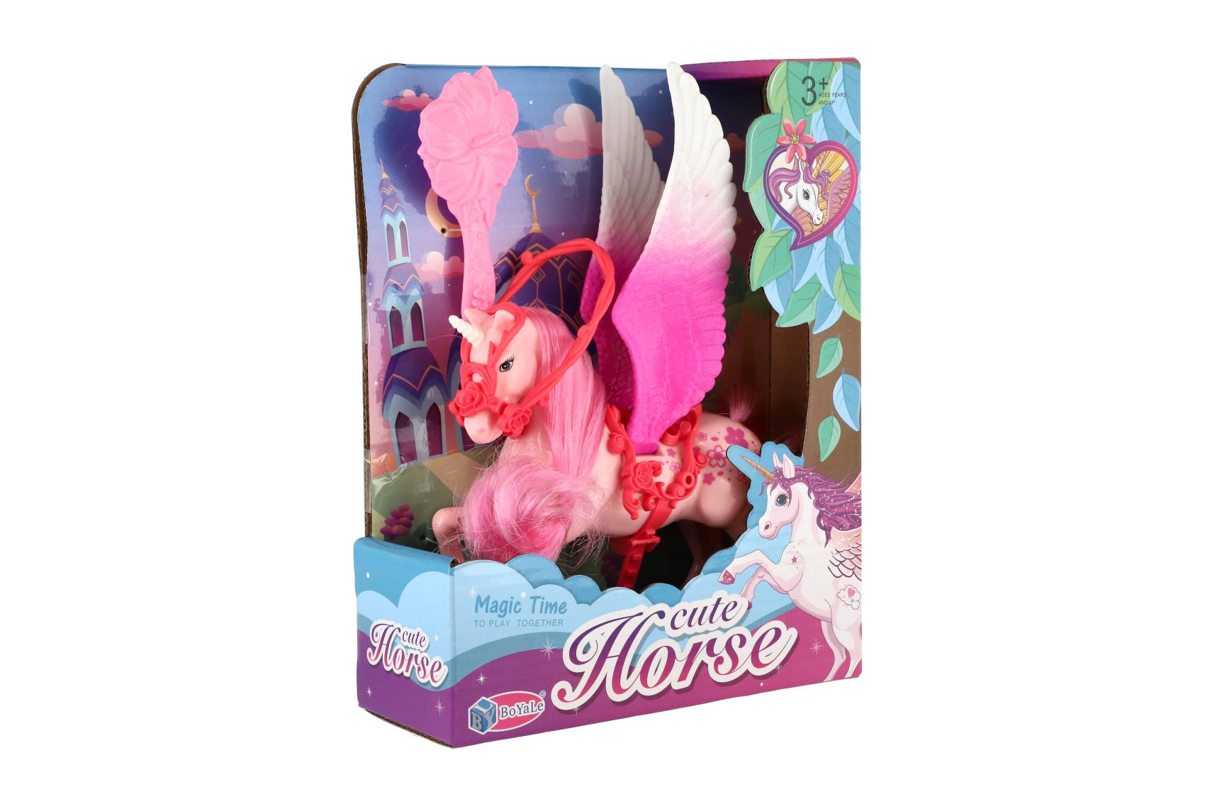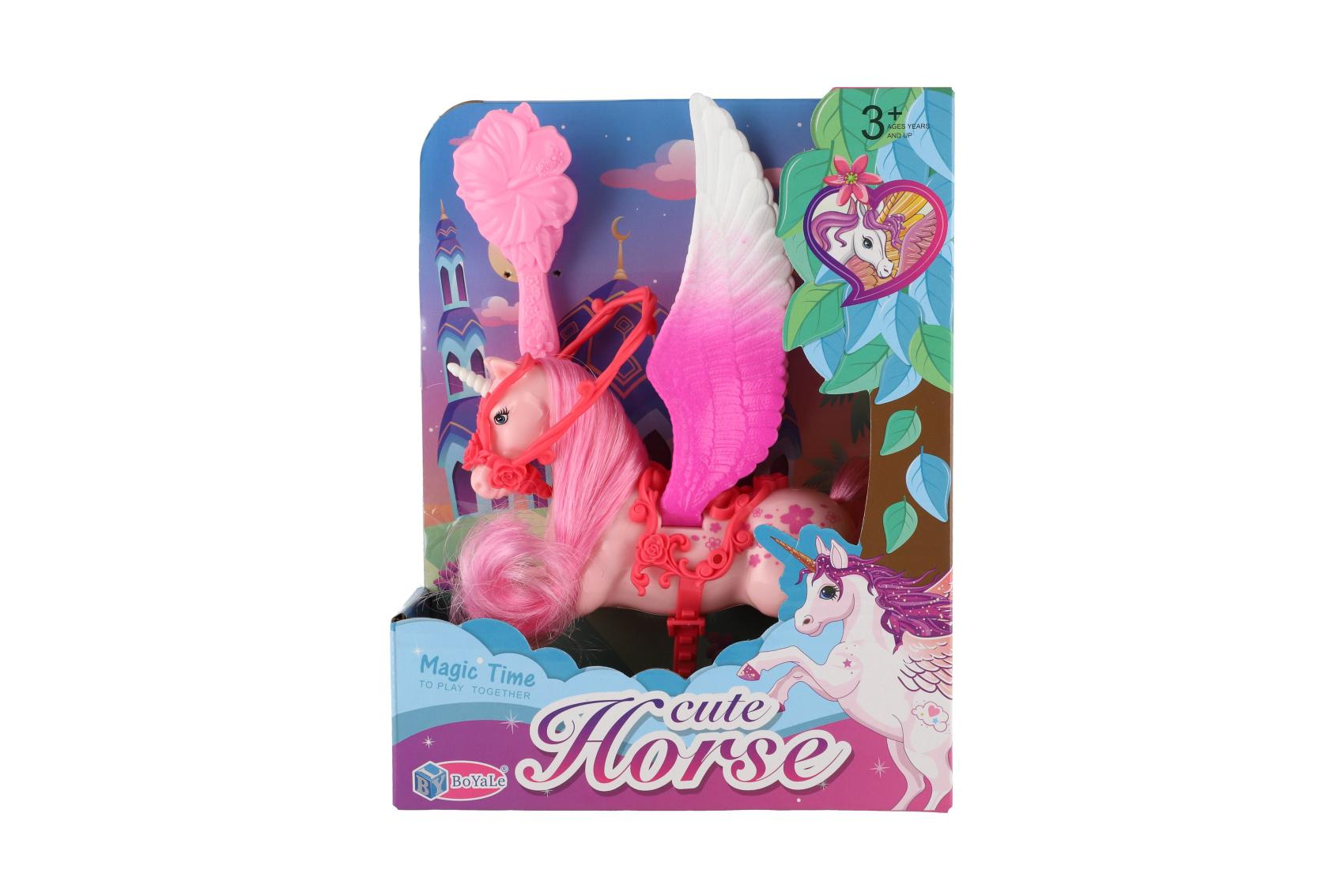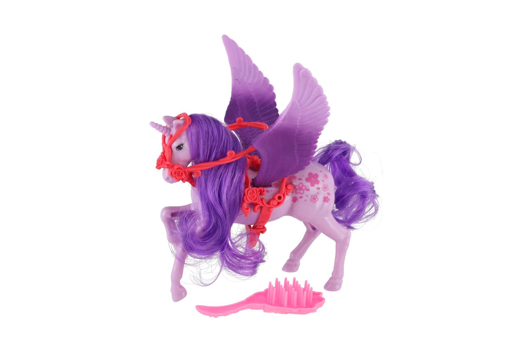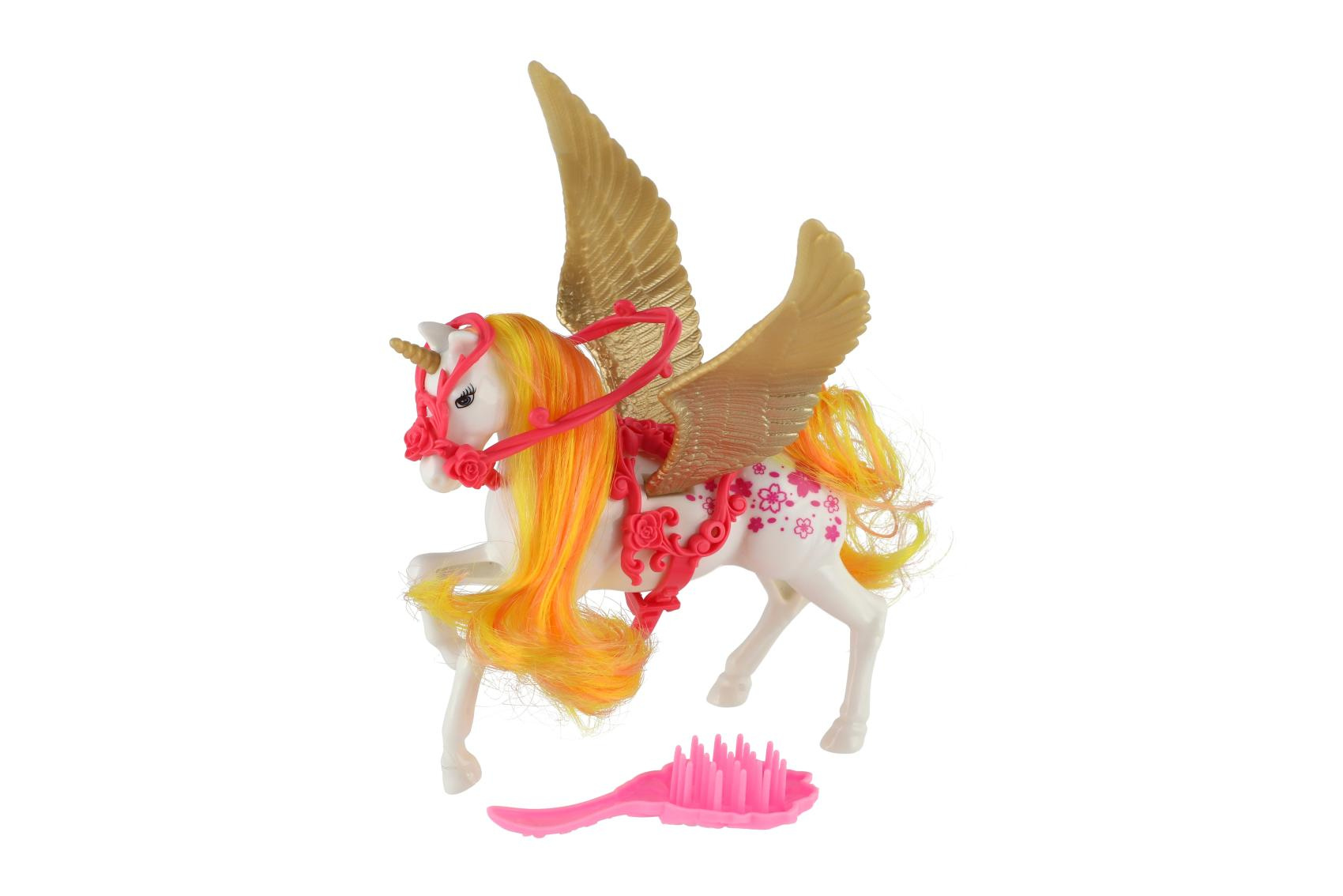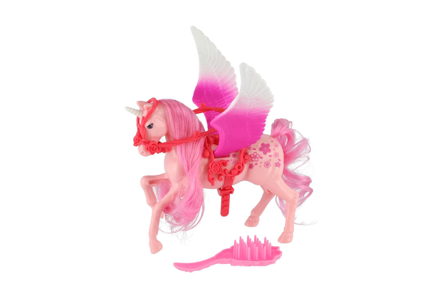 Teddies Jednorožec/kůň s křídly česací s hřebenem plast 22cm 3 barvy v krabičce 17x22x6cm