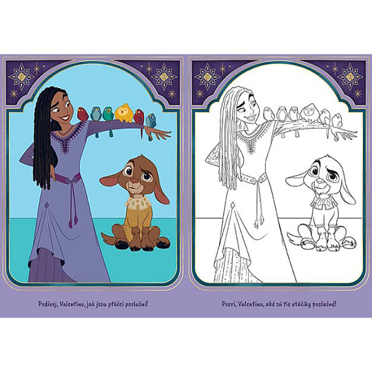 Omalovánky obsahují 9 černobílých obrázků k vybarvení a 9 barevných předloh.