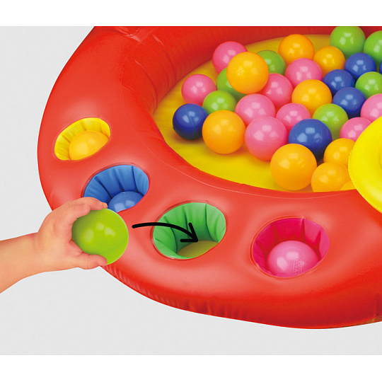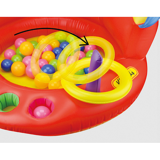 Děti milují míčky! S nafukovací arénou Patrik, která obsahuje 20 míčků, si děti užijí spoustu zábavy. Připevni žlutý kroužek pod nos pejska a zkus se do něj trefit míčky. Hoď nebo polož míček na žluto-modrou klouzačku a sleduj, jak se klouže dolů do arény. Poznávej barvy. Najdi správnou barvu míčku a vlož jej do barevného otvoru. Pro podporu koordinace oko-ruka je zde připraveno házení kroužků. Tato hračka není určena na vodu! Rozměry produktu: 93 x 60 x 93 cm. Rozměry balení: 37 x 49,8 x 12,3 cm. Věk: 12 m+... více