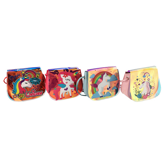 Teddies Kabelka/Taška duhová jednorožec plast 4 barvy 17x15x3cm