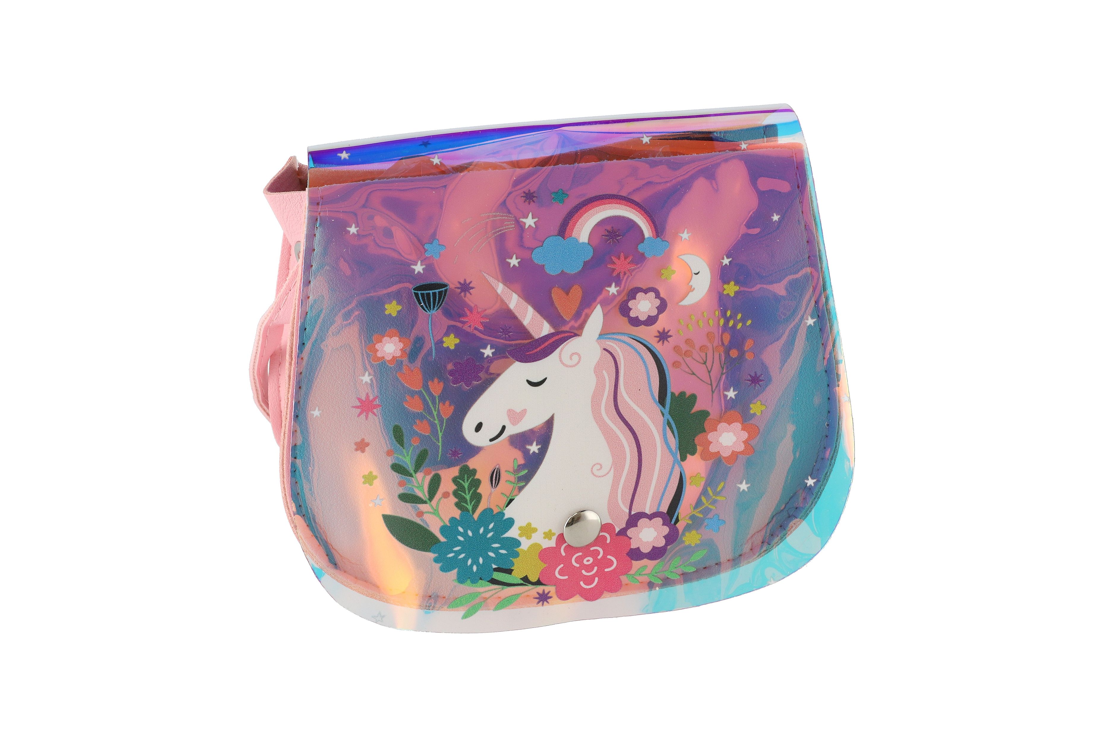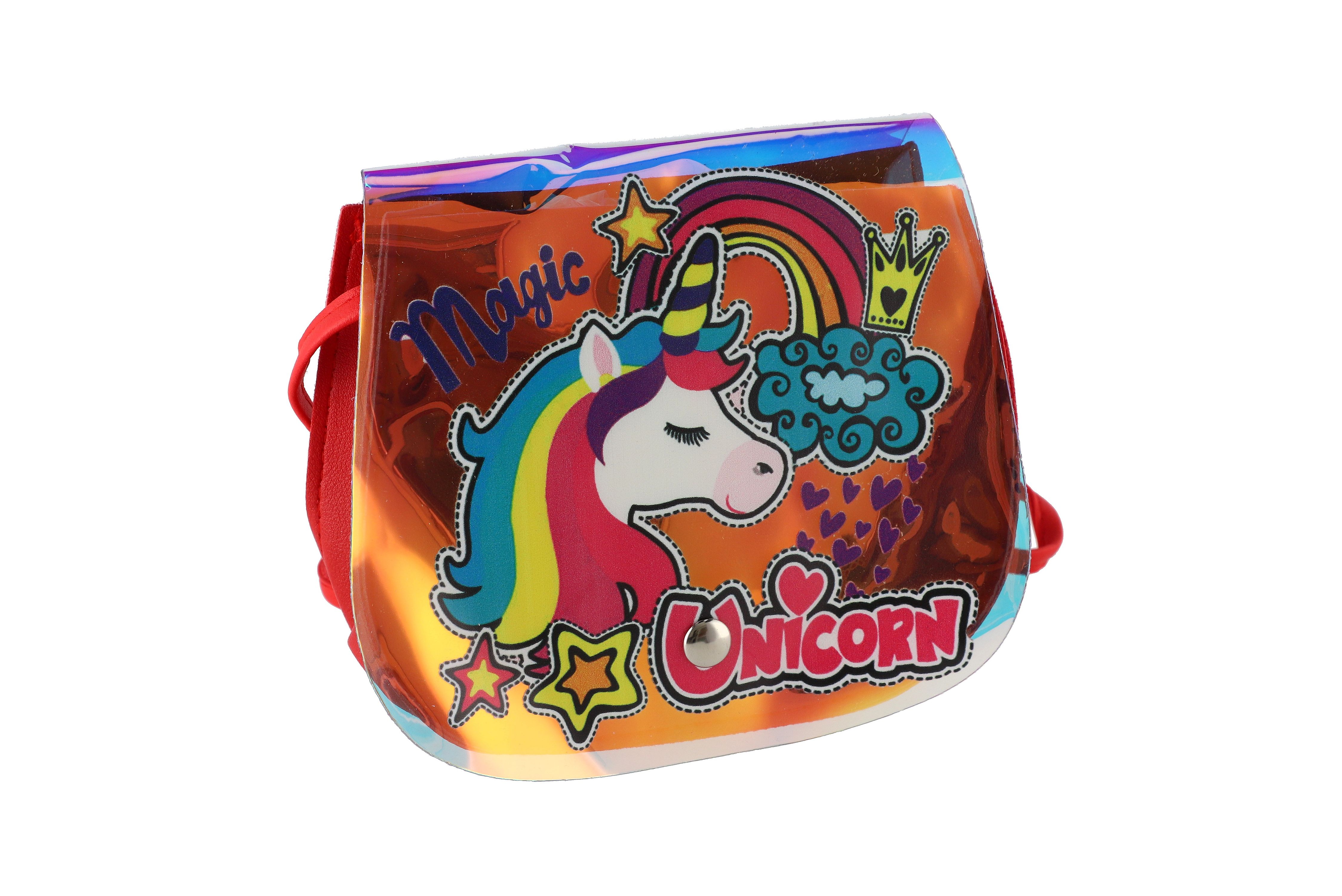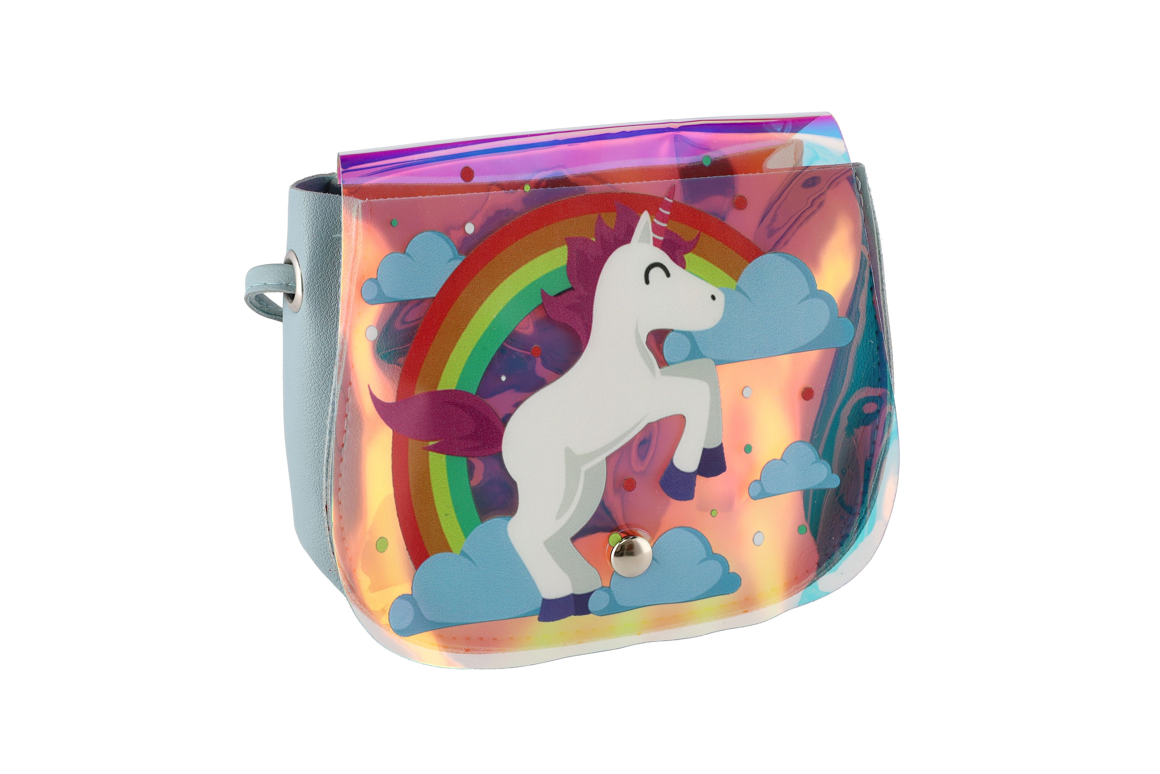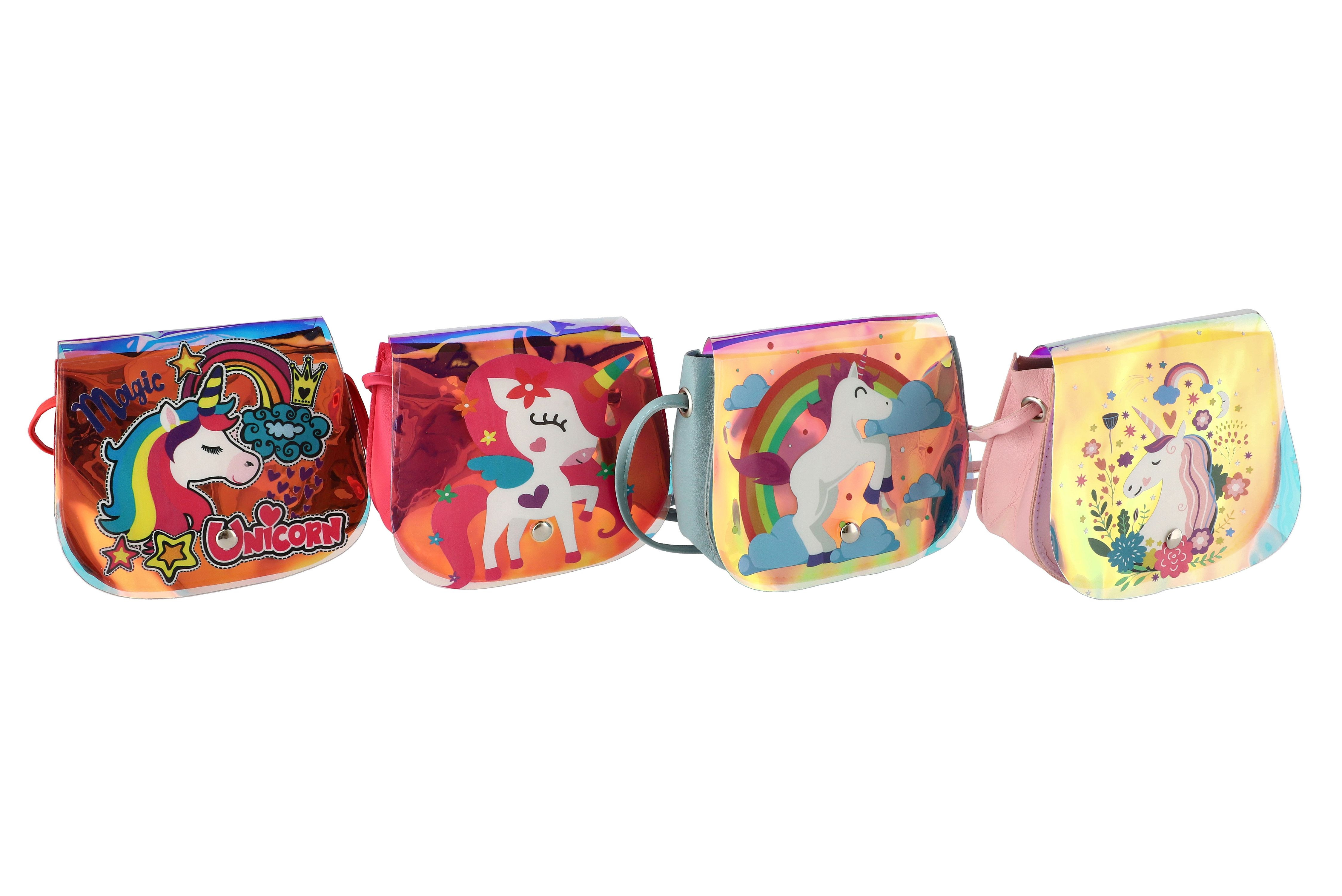 Teddies Kabelka/Taška duhová jednorožec plast 4 barvy 17x15x3cm