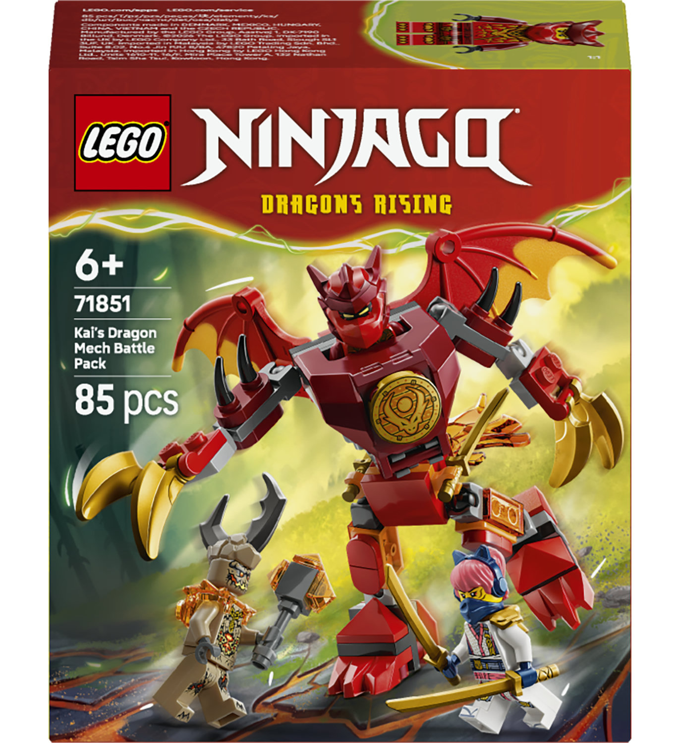Připravte se na epické bitvy a nindžovská dobrodružství s LEGO® NINJAGO® Kaiovým bojovým balíčkem s dračím oblekem (71851)! Tato úžasná stavebnice je ideální pro kluky a holky od 6 let, kteří milují akční hračky a svět NINJAGO®.