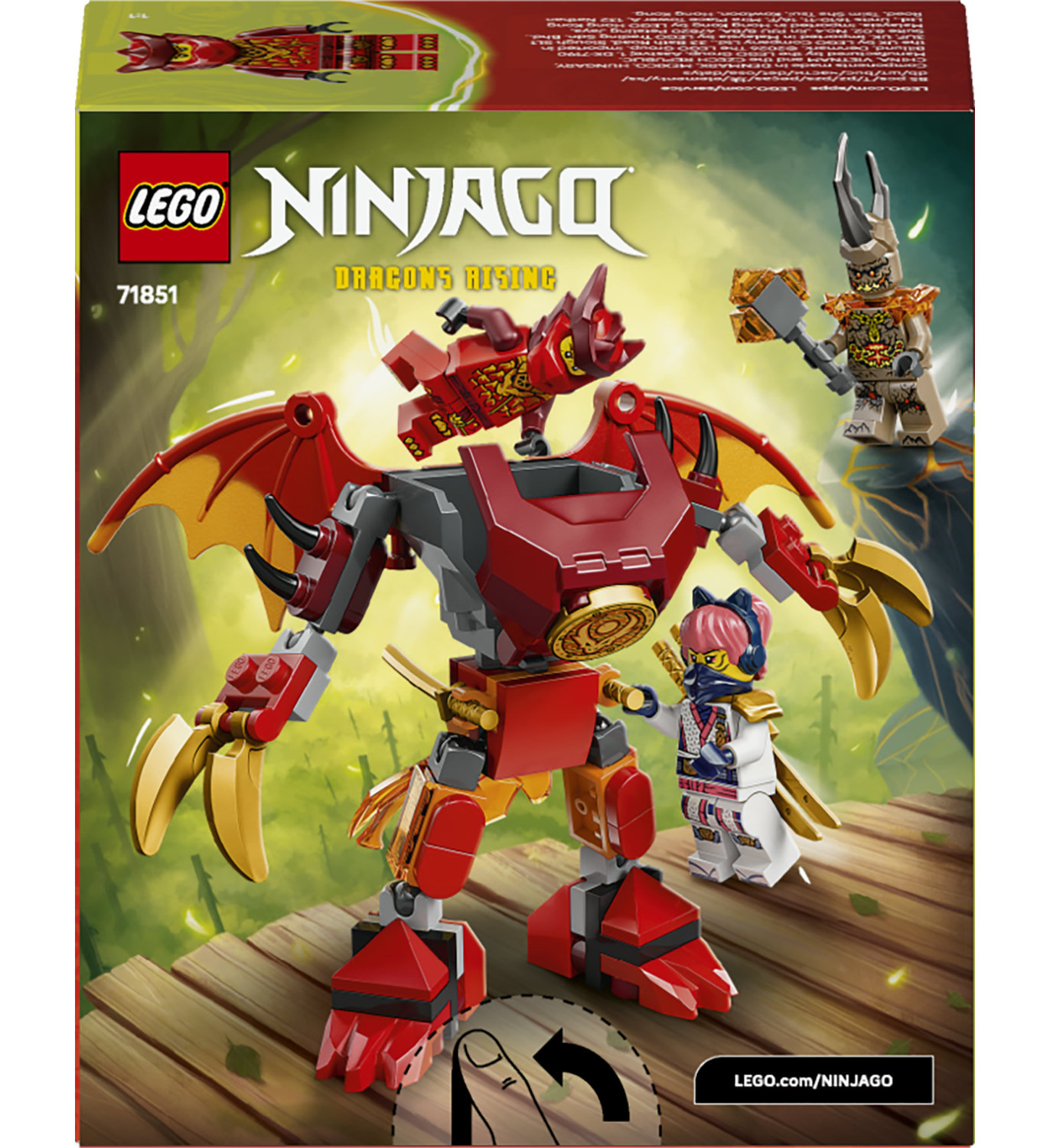 Sestavte si impozantního dračího robota, který je plný pohyblivých prvků. Jeho nohy, křídla a ruce s drápy umožňují dynamické pózování a realistické bitvy. Horní část těla robota se otáčí o 360 stupňů, takže Kai může sledovat své nepřátele ze všech úhlů. Do kokpitu se pohodlně vejde minifigurka Kaie, připravená k boji.