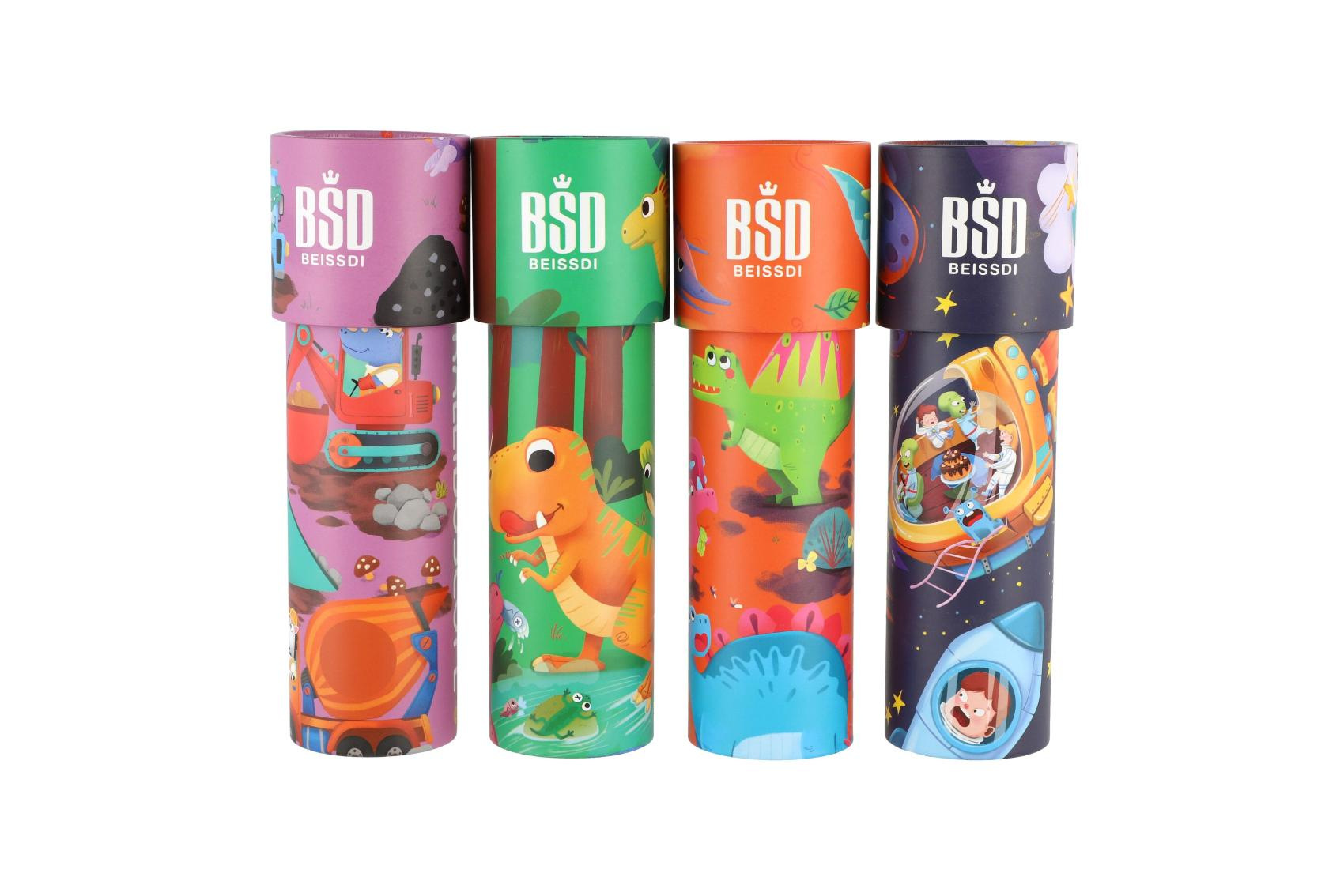 Vstupte do světa barevné fantazie s dětským kaleidoskopem v motivu dinosaurů. Stačí nahlédnout dovnitř a po otočení trubice se před očima objeví nekonečně se měnící obrazce plné barev a světelných efektů. Ideální drobný dárek, který zabaví děti na dlouhé chvíle.