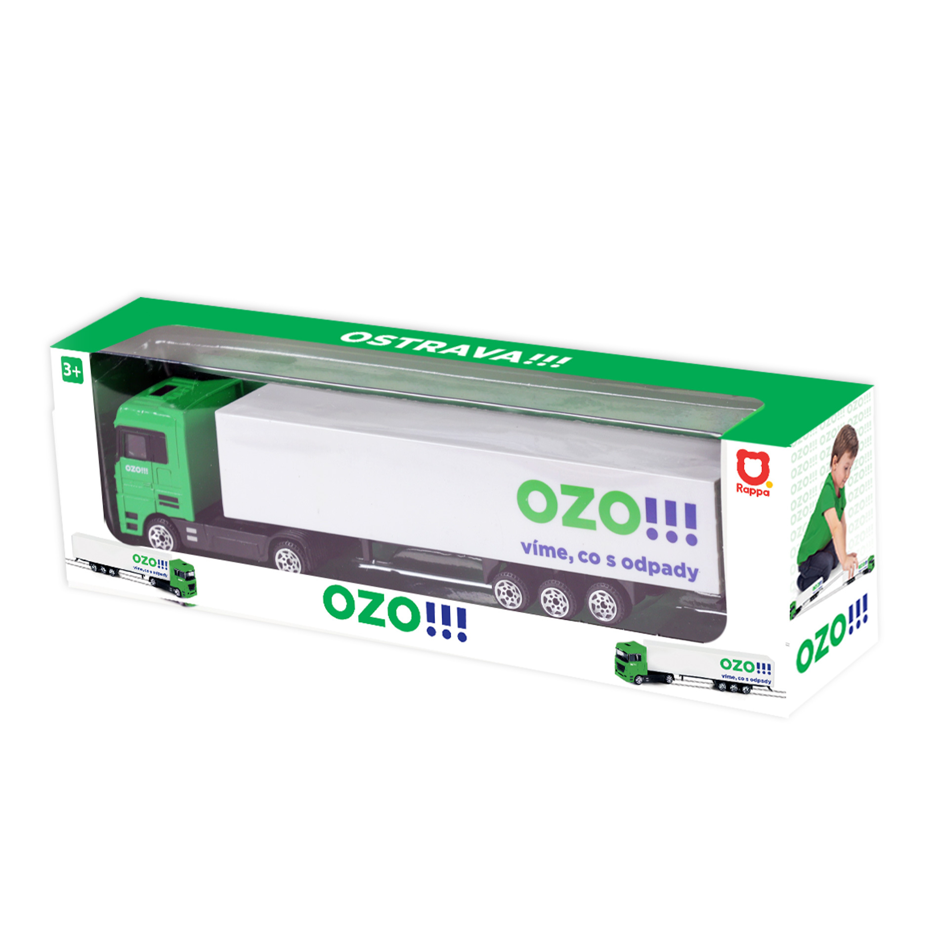 Tenhle senzační kamion s logem OZO !!! nesmí chybět ve tvé sbírce klasických autíček! Model kamionu 1:87 je vyroben z kovu, přívěs je vyroben z PVC. Model je dlouhý cca 20 cm a jezdí na volný chod. Tahle unikátní hračka nadchne všechny kluky, tak obohať svou sbírku o tento parádní kousek!