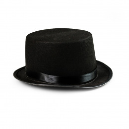 Stylový cylindr pro dospělé je vysoký 12 cm. Tento černý elegantní klobouk je zdoben černou saténovou stuhou.