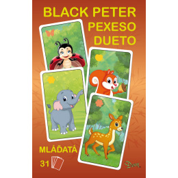 Černý Petr klasická karetní hra s obrázky. Hra se skládá z 31 karet, které jsou rozděleny do 15 dvojic, z nichž je každá dvojice označena stejným obrázkem. Pouze jediná karta se od ostatních liší a to je Černý Petr . Vyhrává ten, kdo bude mít dvojice vyloženy nejdříve. Prohrává ten, komu zůstane v ruce Černý Petr. Hry se můžou zúčastnit nejméně 3 hráči. Součástí balení je 31 karet a 1 návod. Tento karetní set si oblíbí všechny děti milující mláďátka.