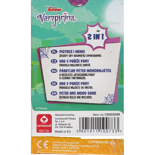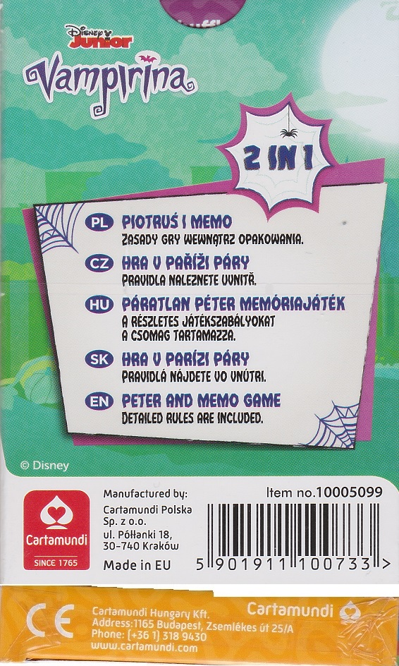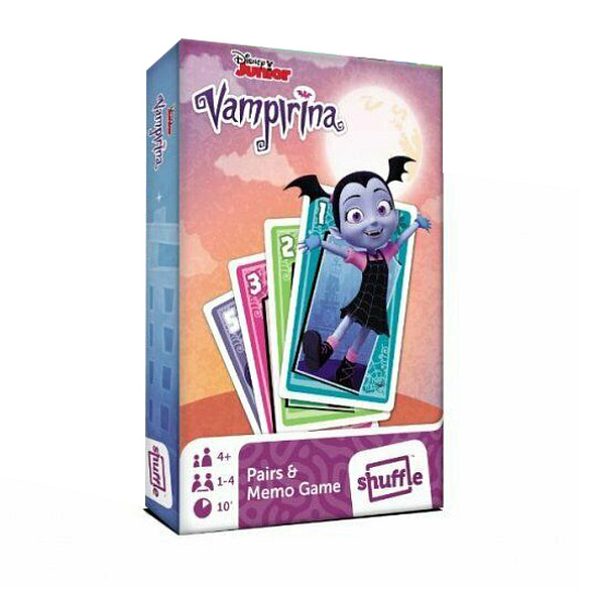 Černý Petr s motivem pohádky Disney Junior Vampirina. Pravidla hry jsou součástí balení. Užij si s kamarády spoustu legrace díky této zábavné karetní hře!