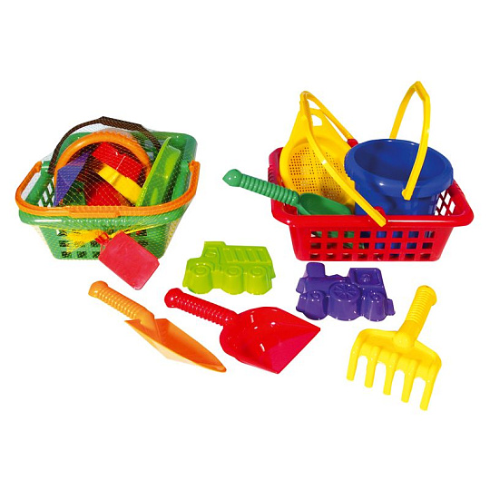 LORI Košík sada - 2 bábovky rýč lopatka hrabičky sítko kbelík nákupní košík plast 12m+