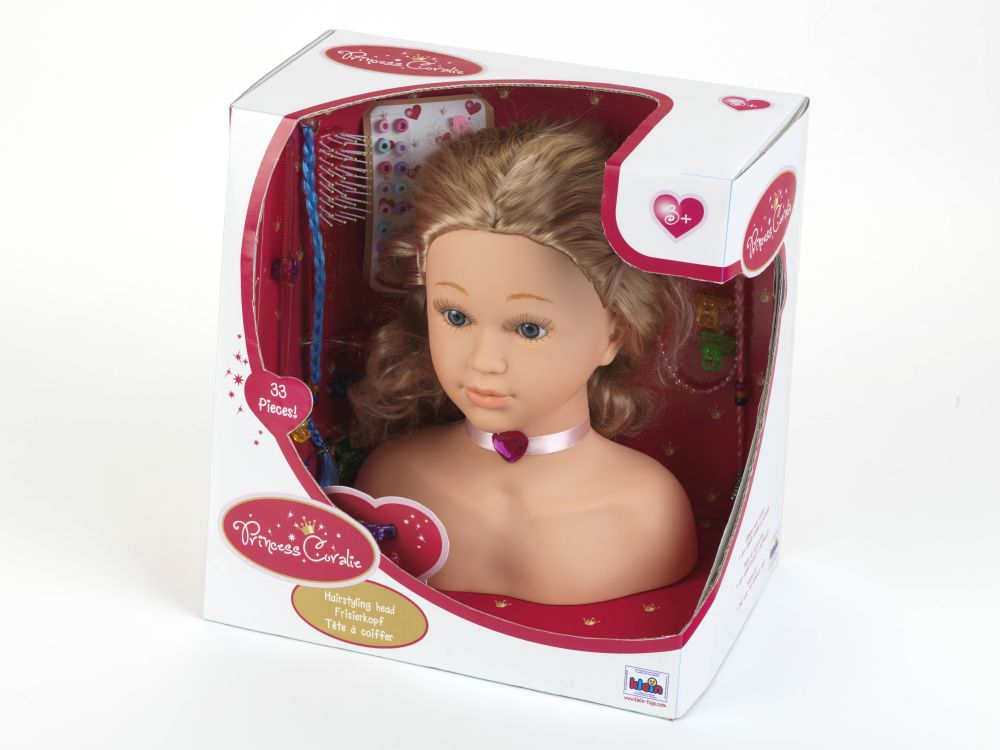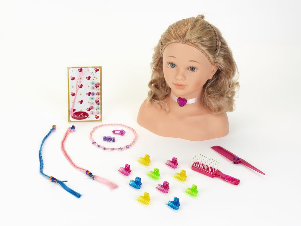 Velká česací hlava se spoustou doplňků. Panenku můžeš učesat, aby byla krásná. Vhodné pro děti od 3 let.
