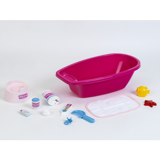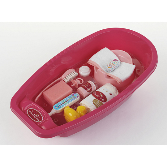 Vanička pro panenky Baby Nurse s odnímatelnou sprchovou hlavicí má mechanickou rotační funkci a usnadňuje mytí vlásků panenky. Součástí příslušenství je kromě lahvičky na mléko a zubního kartáčku také nočník, klinický teploměr, náramek a 2 lahvičky s pečujícím příslušenstvím. Vhodné pro panenky do 42 cm (panenka není součástí balení). Ten